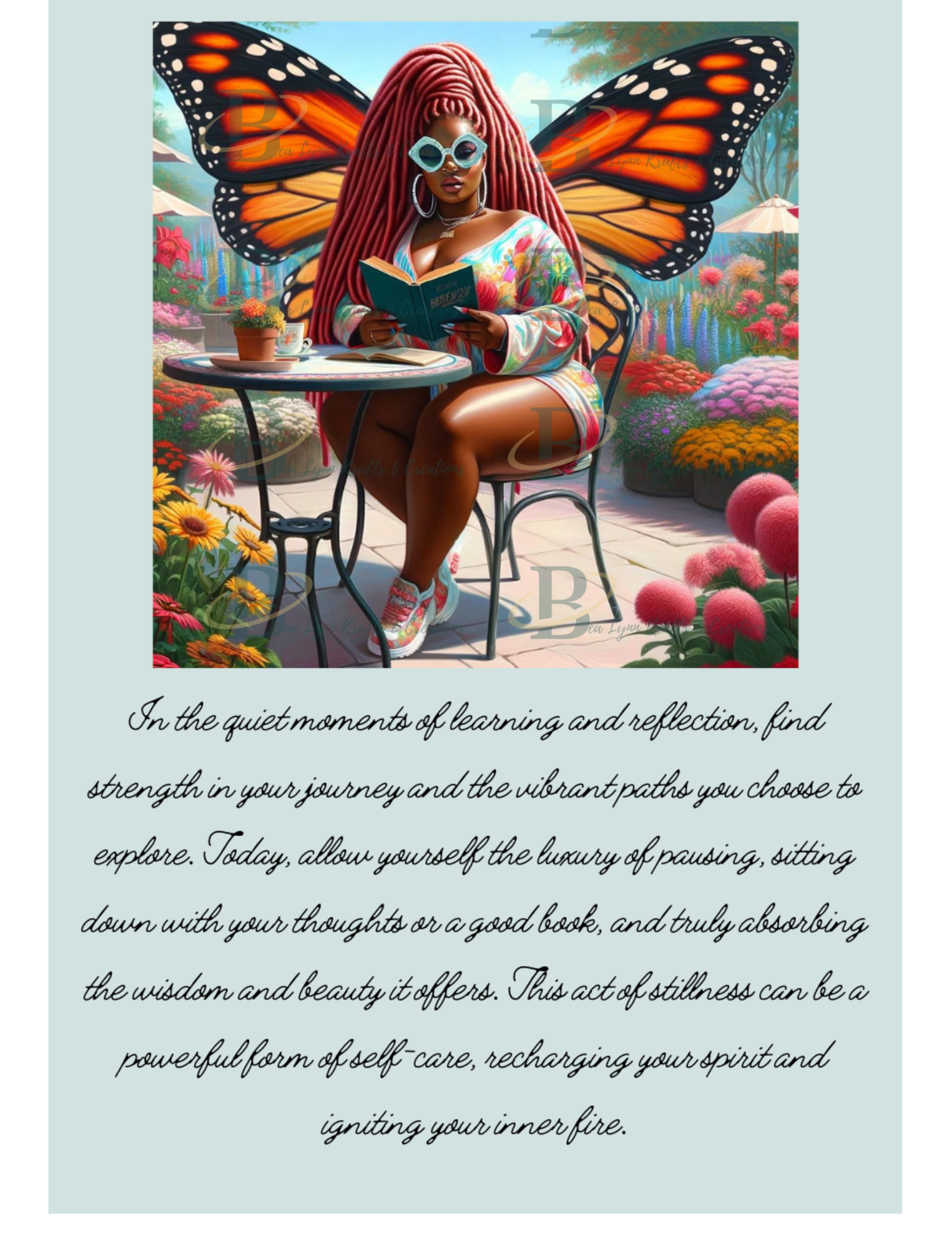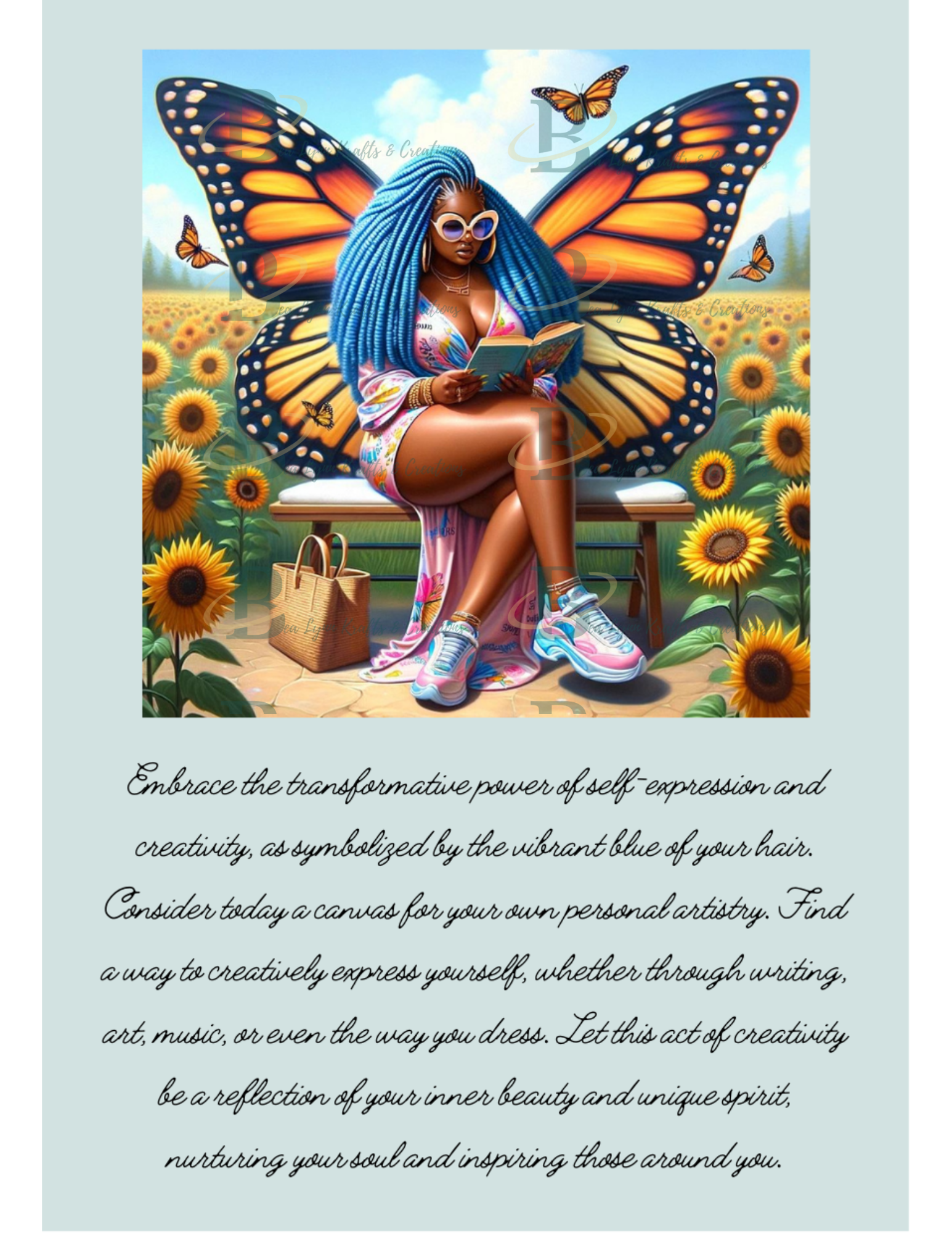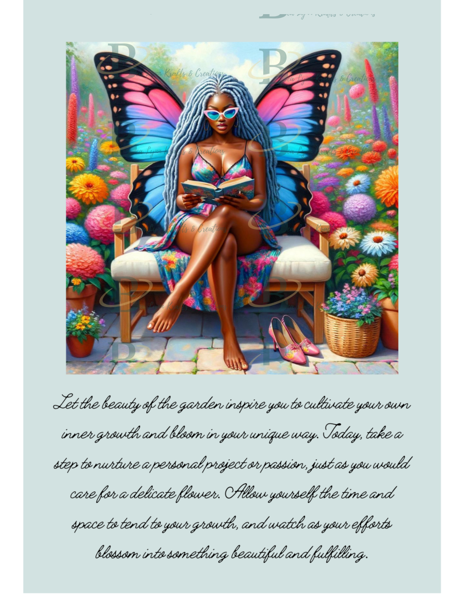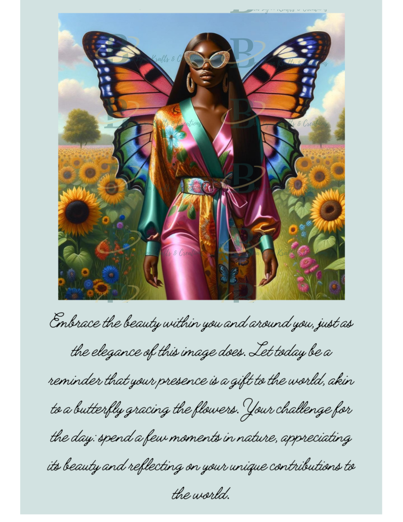 Embrace the transformative power of self-love and positivity with our "Empowerment in Bloom" affirmation card bundle. This enchanting collection features 10 beautifully crafted cards, each adorned with inspiring images of African American women with majestic butterfly wings, set against a vibrant backdrop of sunflower fields. These cards are not just a feast for the eyes but also a source of daily inspiration and empowerment.