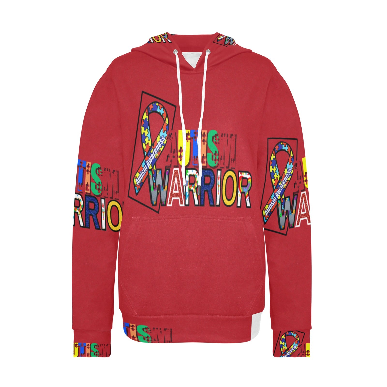 This vibrant and heartfelt women's fleece hoodie is designed for autism awareness and empowerment. Featuring bold, all-over print graphics of the words "Autism Warrior" alongside puzzle piece ribbons, this hoodie is both a symbol of support and a statement of strength. Crafted with a comfortable fleece material, the hoodie is perfect for cooler days, ensuring warmth and comfort while spreading awareness. The red, yellow or green base color is striking and allows the colorful puzzle piece ribbons and text to pop, making this a standout piece in any wardrobe. It’s designed for those who advocate for autism awareness, whether they are warriors themselves or supporting loved ones.