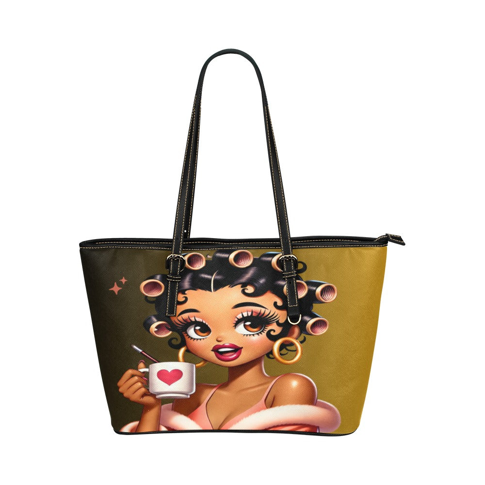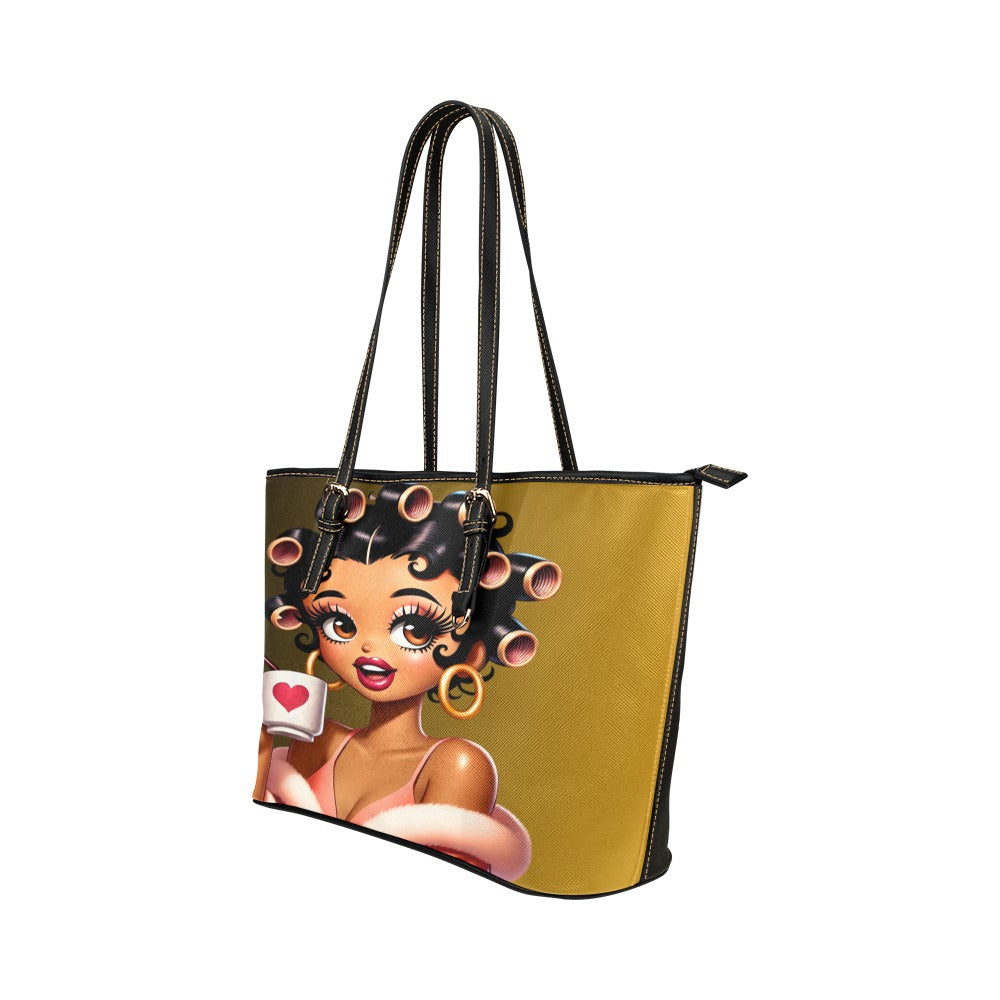 Step out in style with this stunning Betty Boop-inspired two-toned canvas tote bag, designed for fashionistas who love a mix of vintage and modern flair. This large-capacity tote features a bold and vibrant Betty Boop graphic, with her signature curled hair, glamorous makeup, and a playful coffee cup. The background blends golden and deep tones, making it a statement piece that effortlessly elevates any outfit. Whether you're heading to work, a weekend getaway, or simply running errands, this trendy and functional tote has you covered!