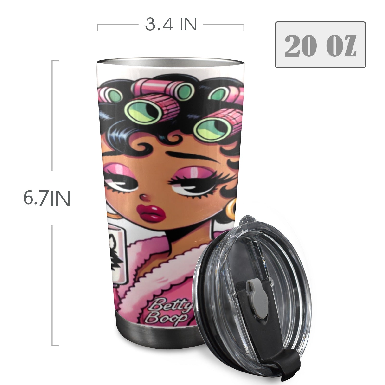 Stay hydrated in style with this 20 oz Betty Boop Insulated Tumbler, featuring a vibrant and playful design of Betty Boop with colorful hair rollers, sipping her coffee. This tumbler is perfect for keeping your drinks hot for up to 6 hours and cold for up to 12 hours, making it ideal for both your morning coffee and afternoon iced tea. Made with double-wall vacuum insulation, it preserves your drink's temperature while preventing condensation on the outside. The tumbler comes with a secure, clear sliding lid, making it travel-friendly and spill-resistant. Whether you're a Betty Boop fan or just need a reliable tumbler for your beverages, this one combines function with fun, perfect for daily use at work, home, or on the go.