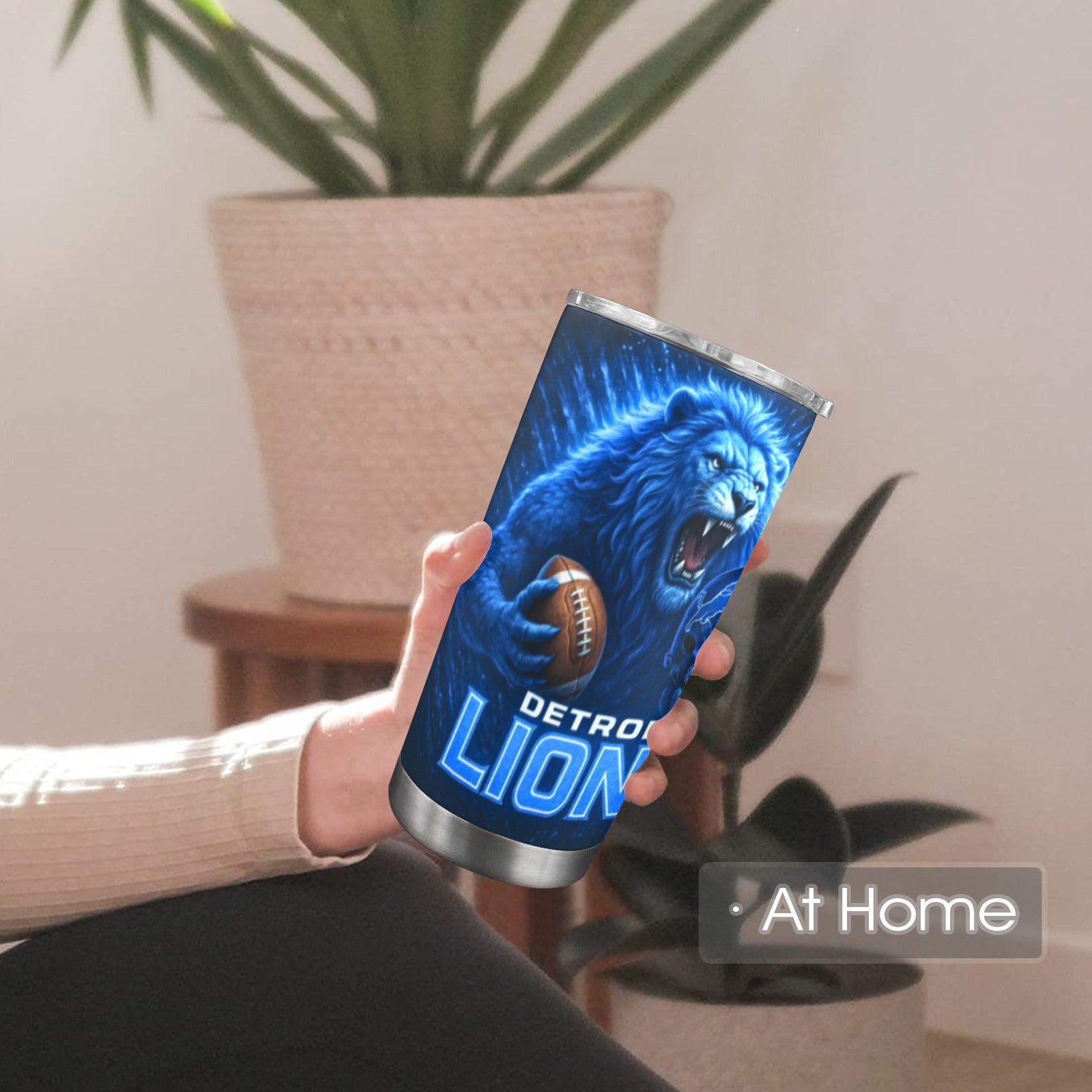 Detroit Lions 20oz Insulated Tumbler – Stainless Steel Hot & Cold Cup with Slide Lid | Lions Football Fan Gift