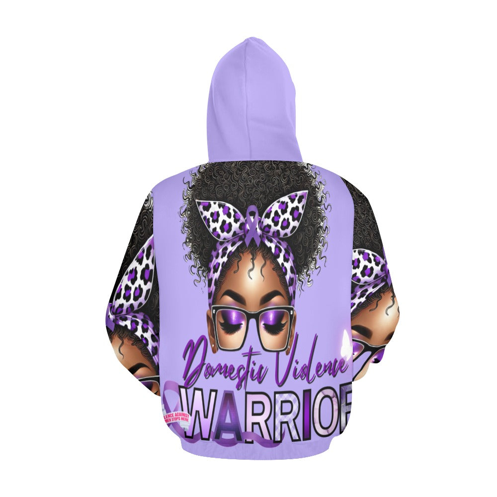 This Men's Domestic Violence Warrior All-Over Hoodie is a powerful symbol of strength, solidarity, and support. Designed with bold purple tones and a striking, courageous graphic, this hoodie serves as a reminder that the fight against domestic violence is one we must all take seriously.