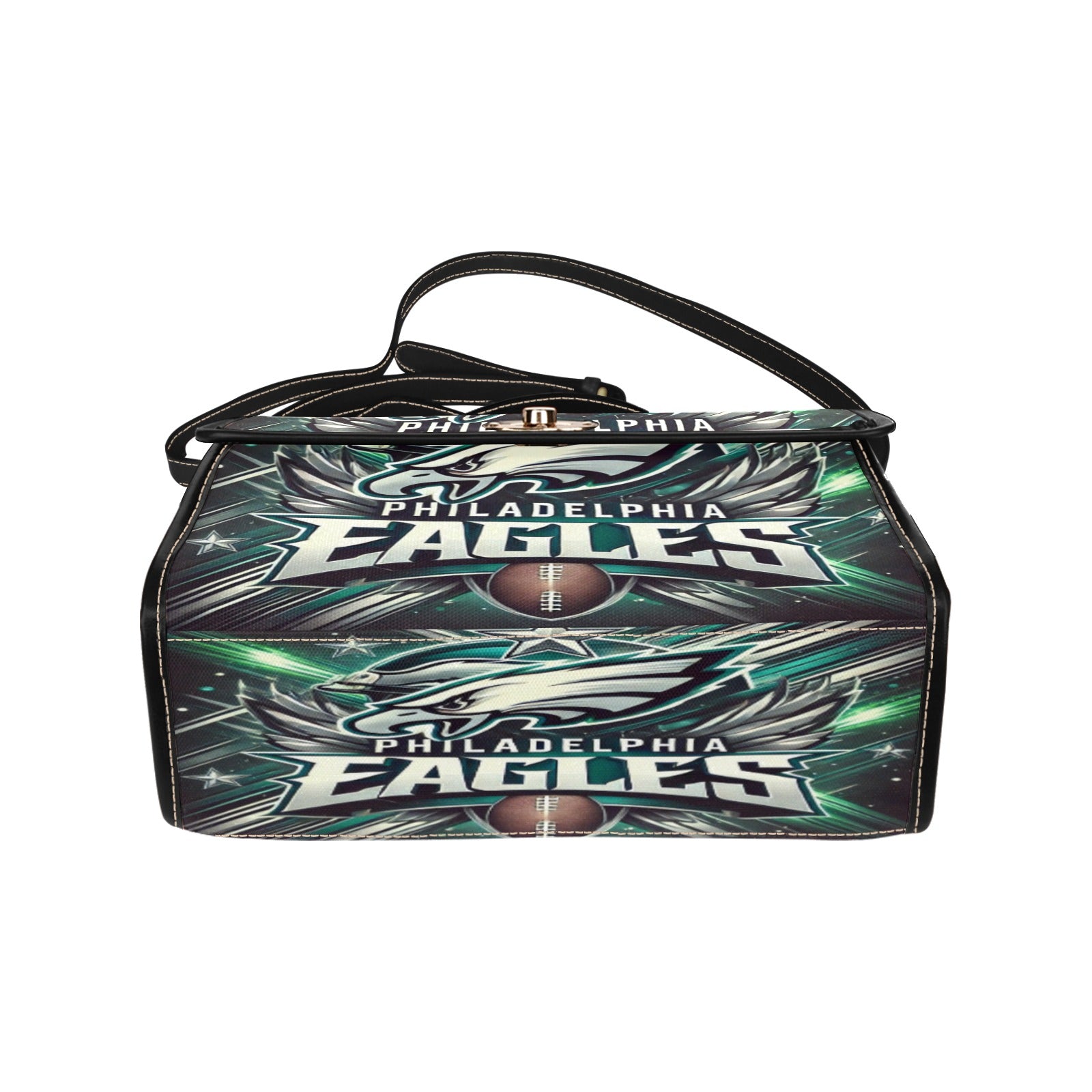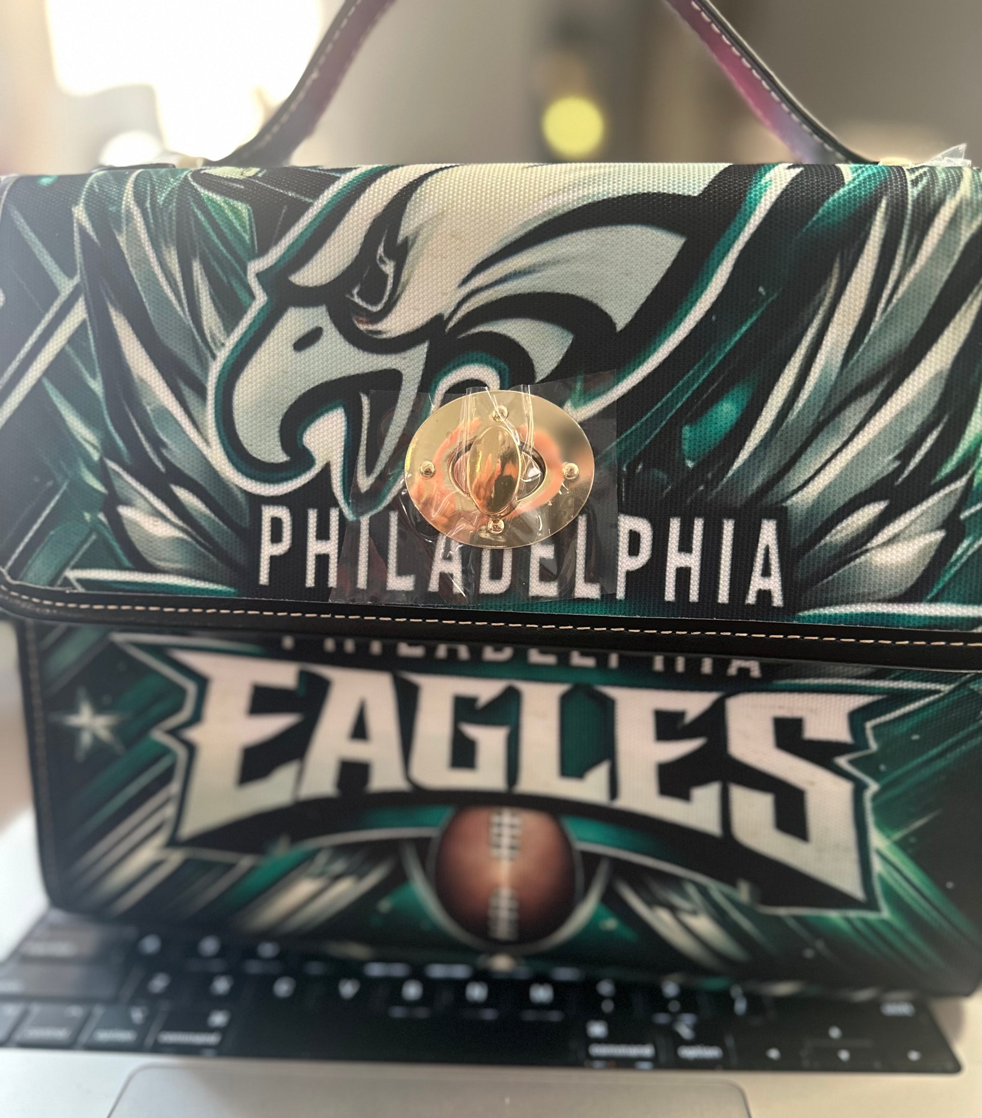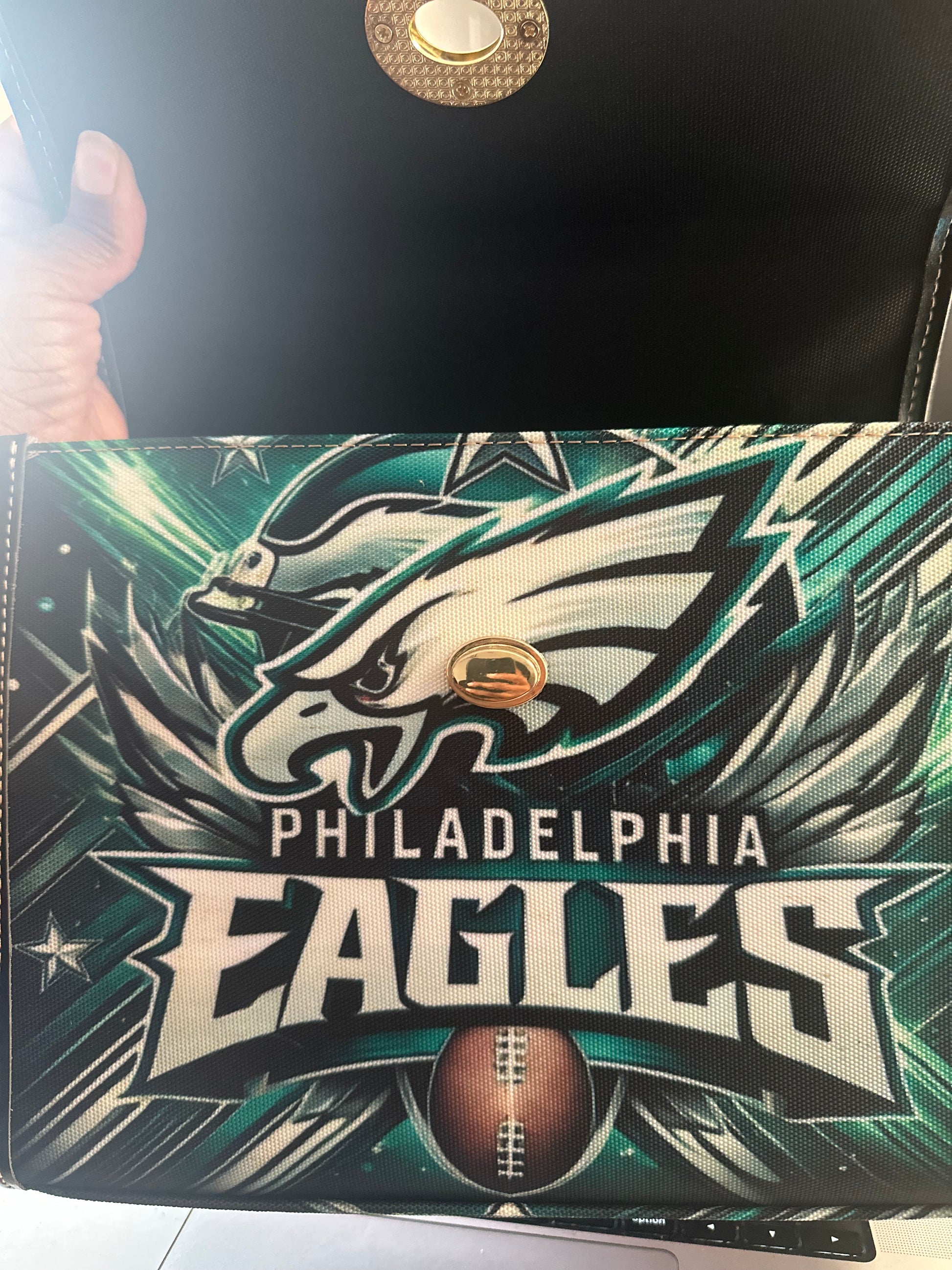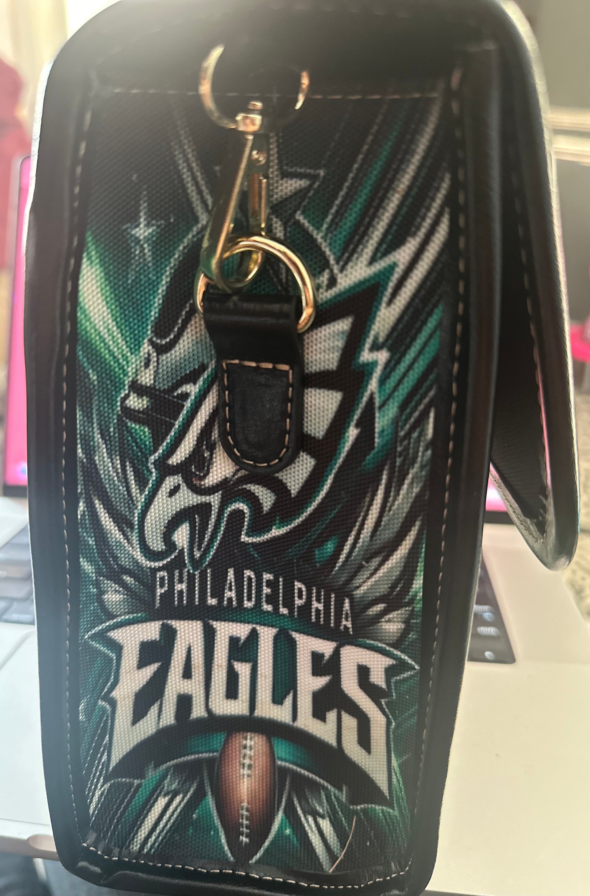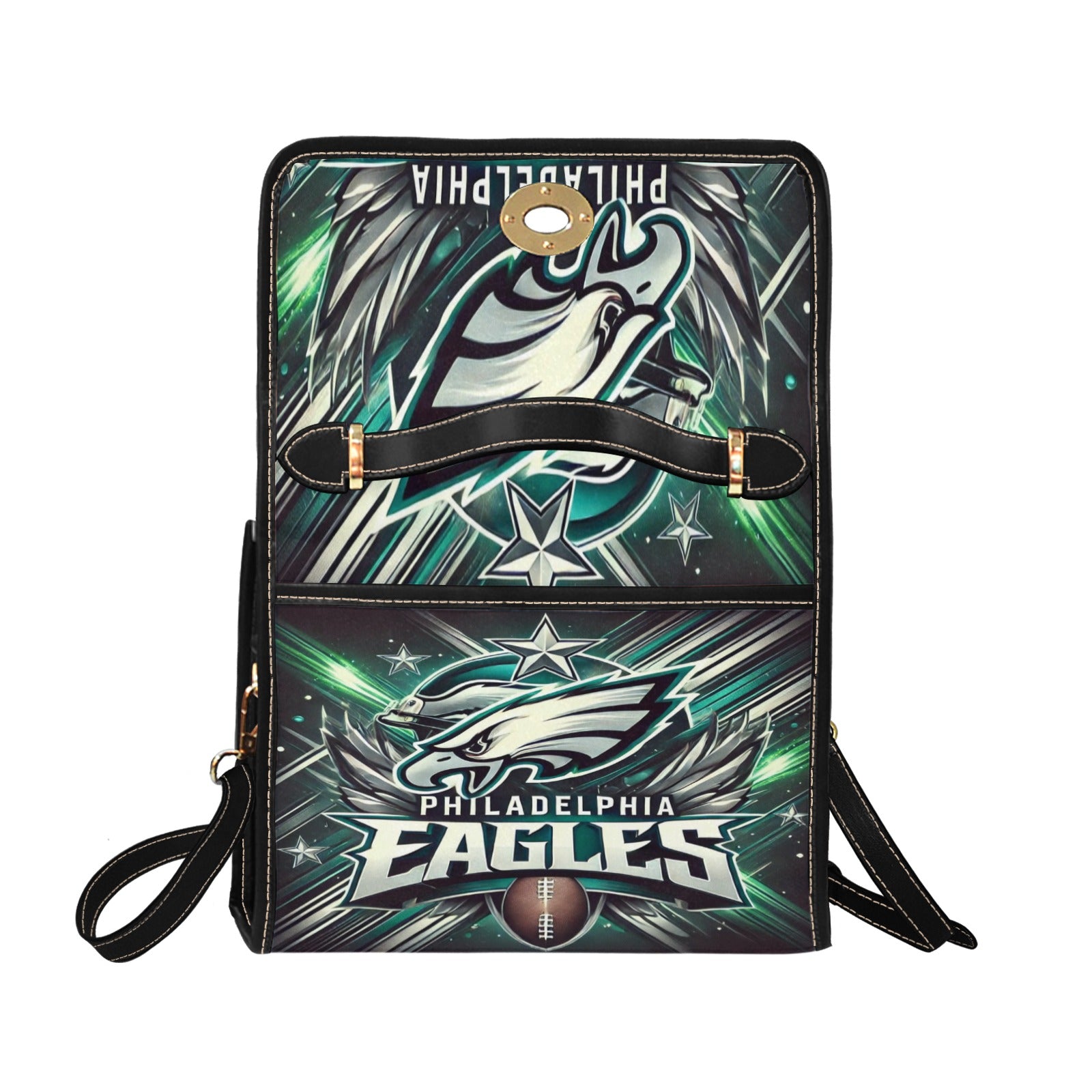 Elevate your game-day style with this sleek Philadelphia Eagles waterproof canvas bag. Designed for durability and elegance, this bag features high-grade waterproof canvas material with a bold Eagles logo and graphics that stand out. It includes two interior pockets and one zipper pocket, perfect for organizing small items while on the go. The bag is accented with double PU leather handles and an adjustable, removable PU leather shoulder strap for versatility in carrying. Whether you’re heading to the stadium, running errands, or out for the day, this compact yet spacious bag offers both style and functionality.
