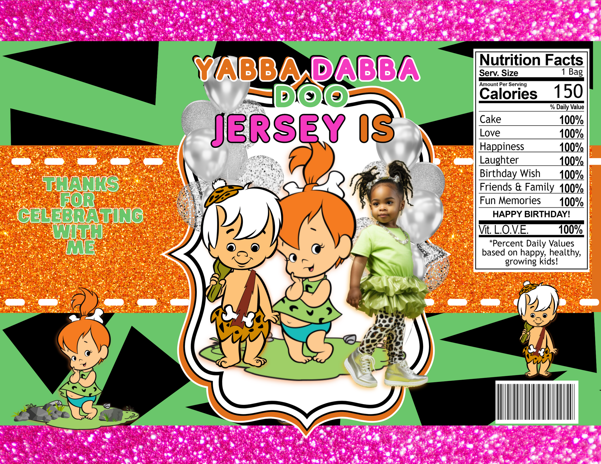 Bring the prehistoric fun to your child's birthday celebration with these editable and customizable Flintstones-themed digital templates! This all-in-one bundle includes a variety of templates for party favors, ensuring a memorable and cohesive party setup. The bundle features templates for chip bags, water bottles, Hershey bars, Pringles cans, gift bags, juice pouches, and rice crispy treats. Each template is designed with vibrant Flintstones graphics and can be easily customized with your child's name, age, and photo. Perfect for busy parents and party planners, these templates save time and guarantee a professional and fun look for your party. Must have canva.com.