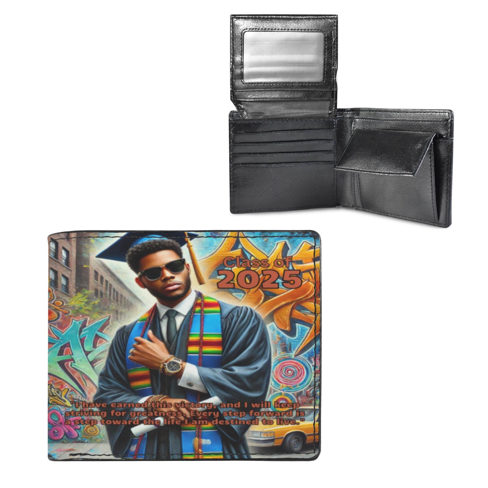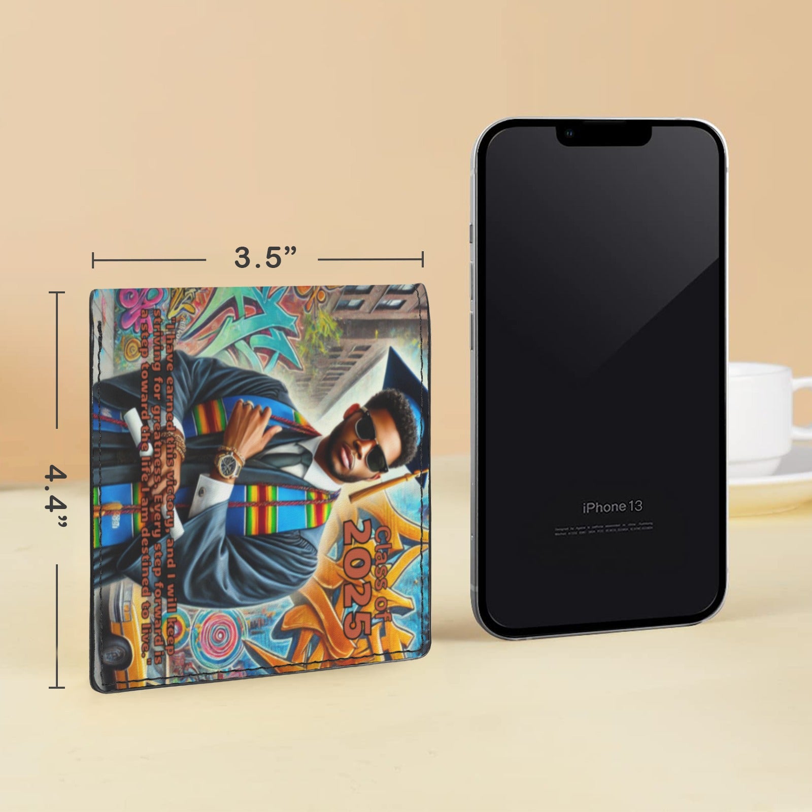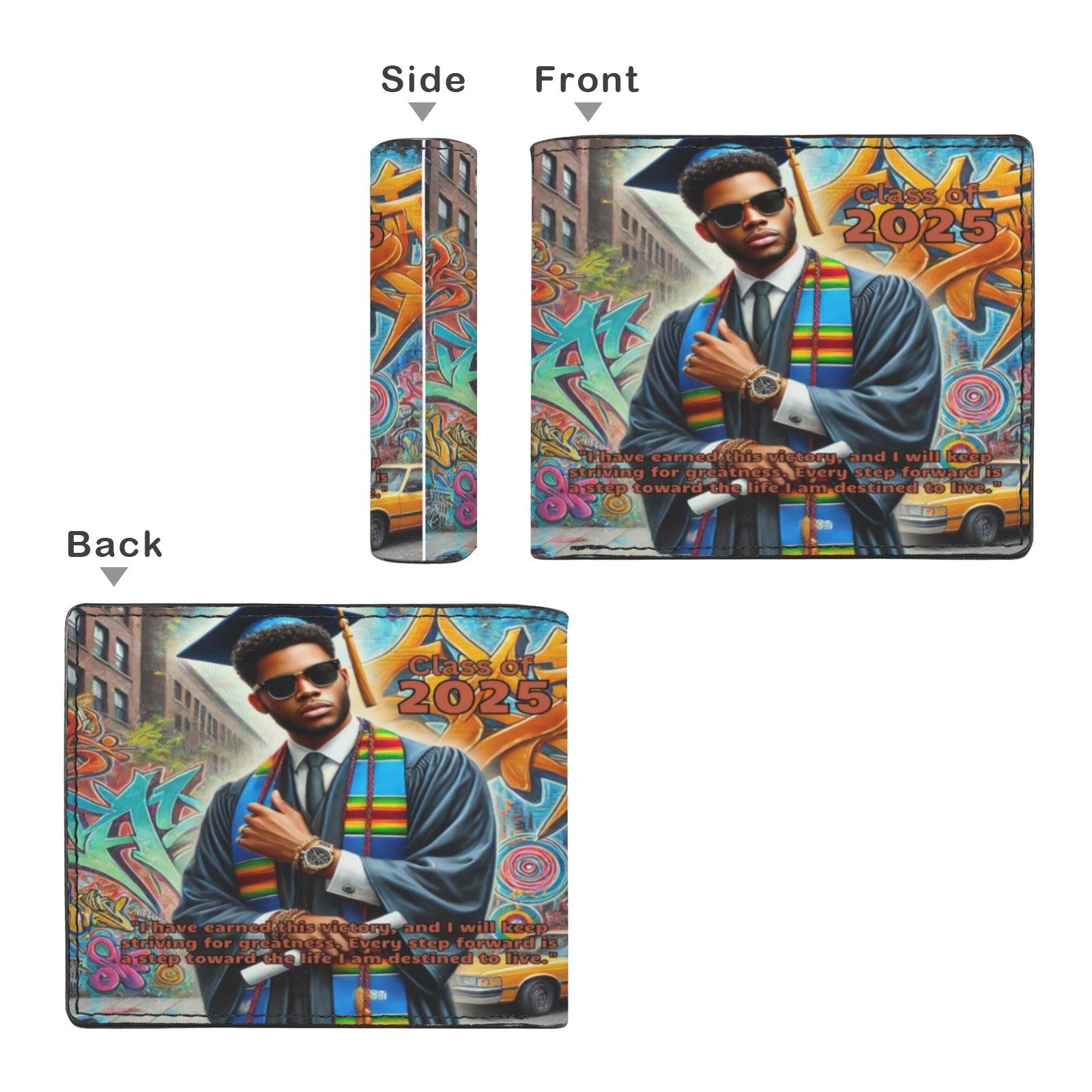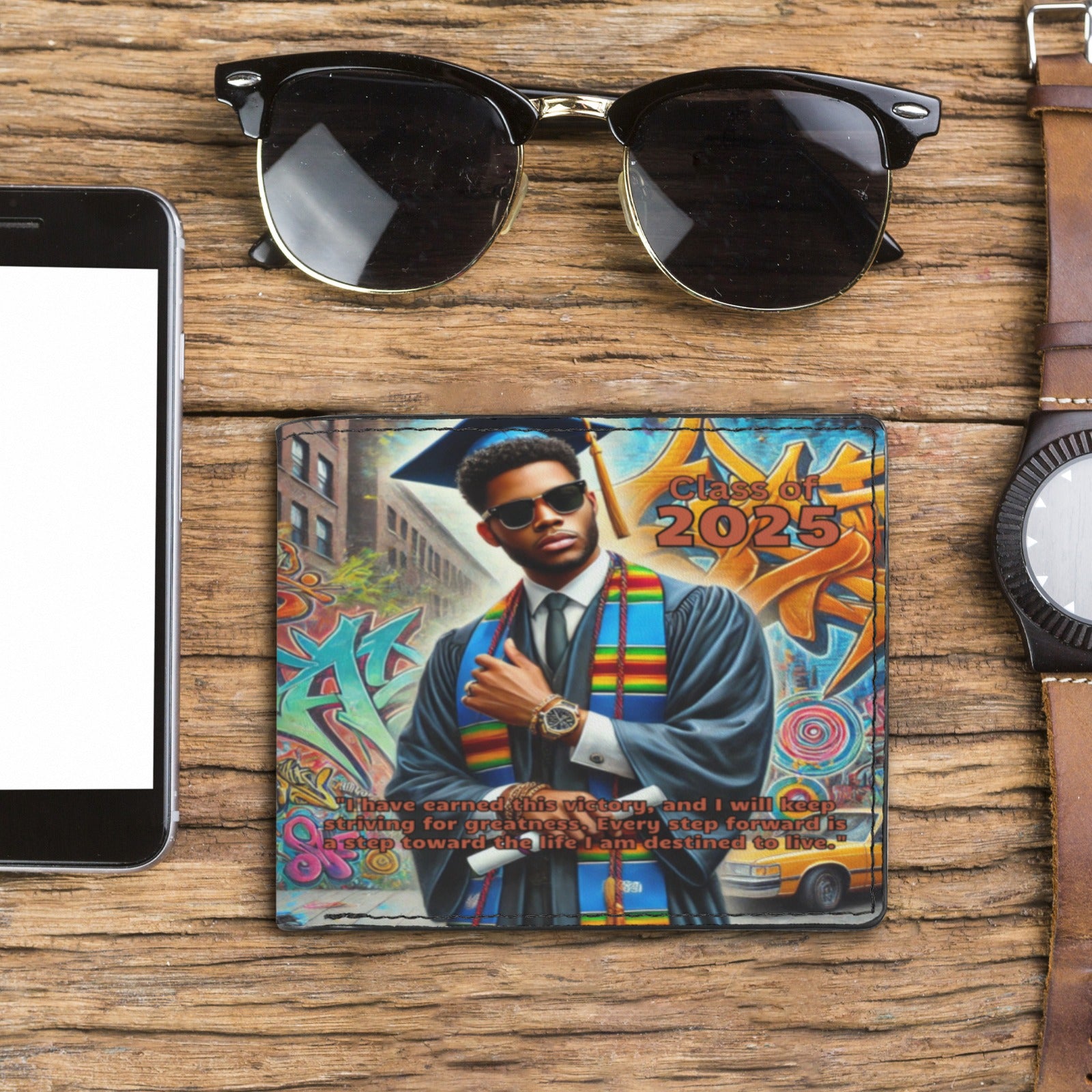 Celebrate your milestone achievement with the HBCU Class of 2025 Graduation Wallet, a unique and stylish bifold accessory designed to honor your hard work and success. Featuring a vibrant, high-quality print of a proud graduate against a graffiti-inspired backdrop, this wallet is a statement piece that represents both culture and accomplishment.