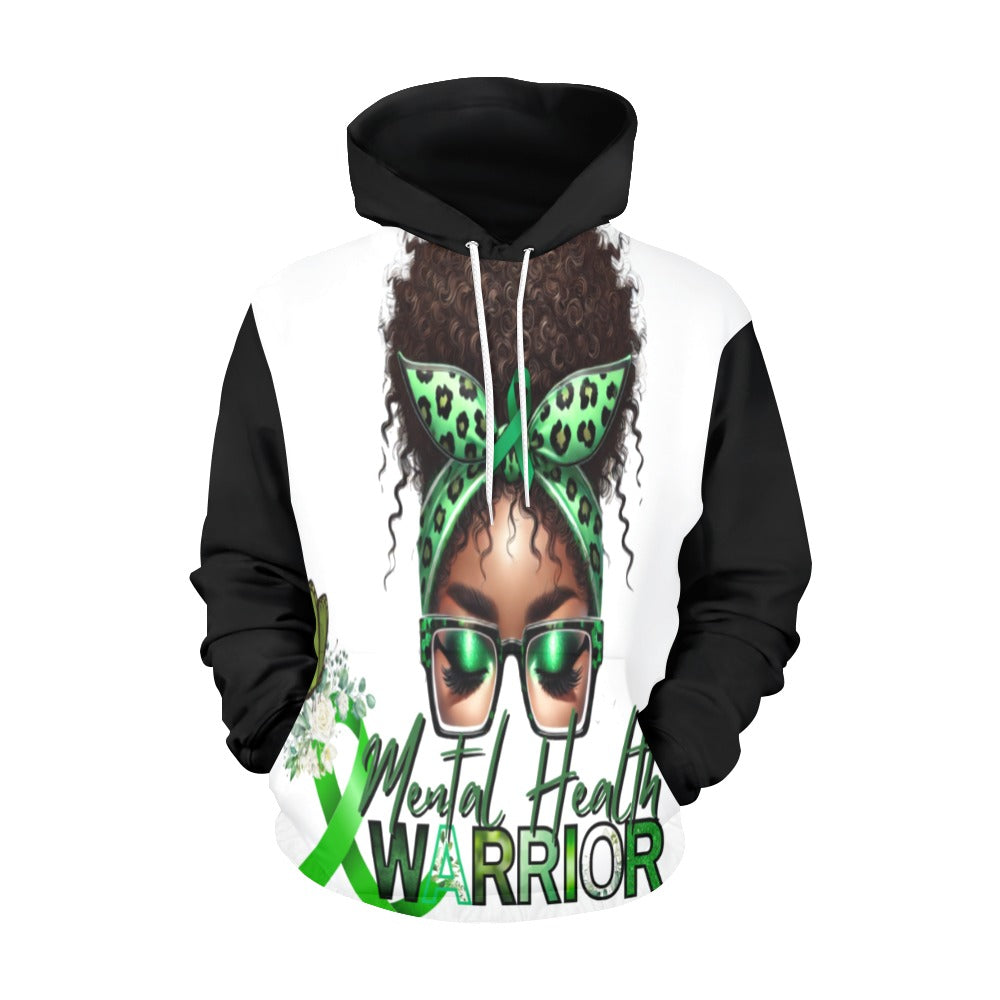 Featuring a bold design of an Afro-American man with a vibrant green bandana and the green ribbon symbolizing mental health awareness, this hoodie serves as a beacon of hope and empowerment. The words "Mental Health Warrior" emblazoned across the front remind us all that mental health challenges do not define us—they are battles that we can overcome with the right support and self-care.