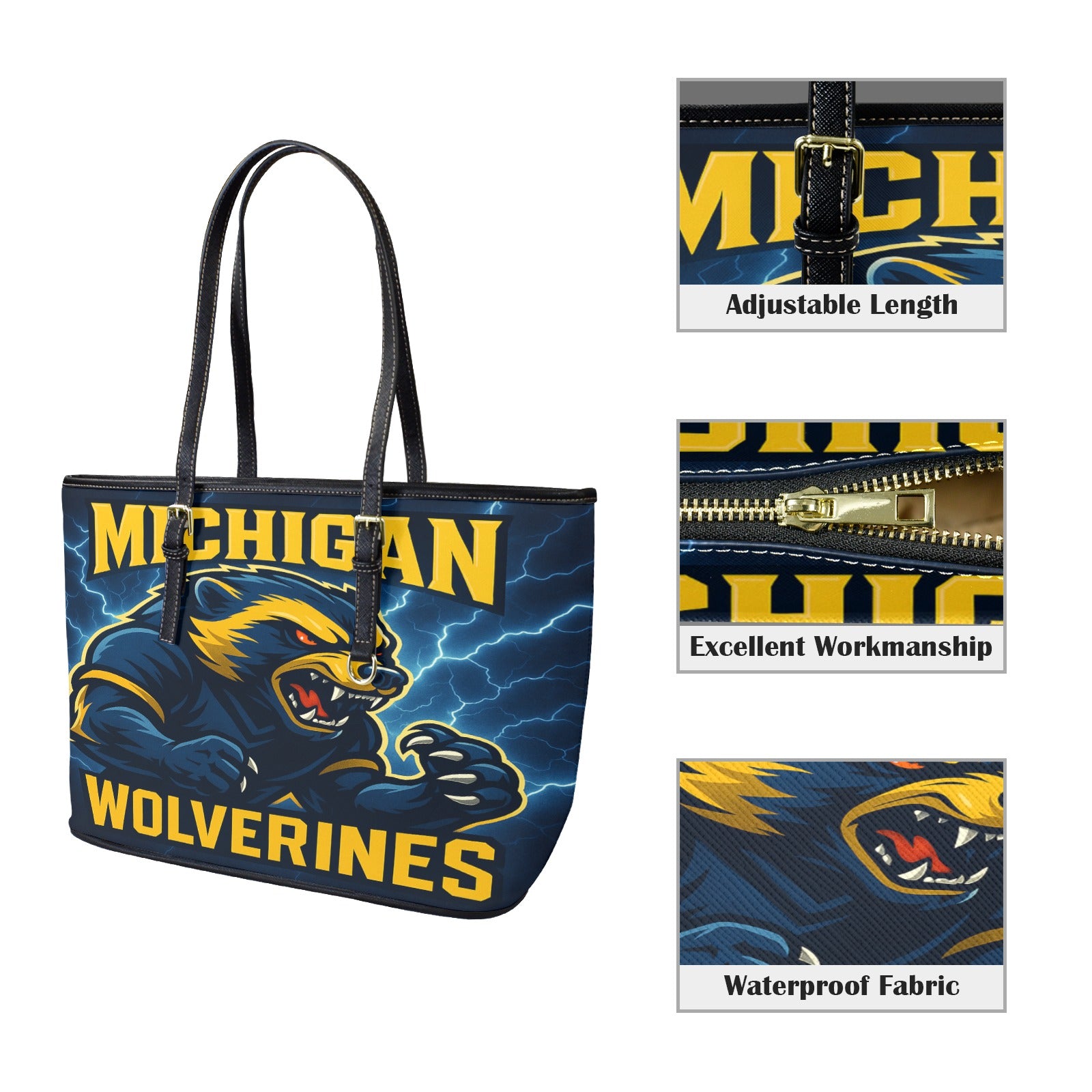 💥 Michigan Wolverines Electric Storm Tote Bag – Premium PU Leather Carry-All with FREE Shipping