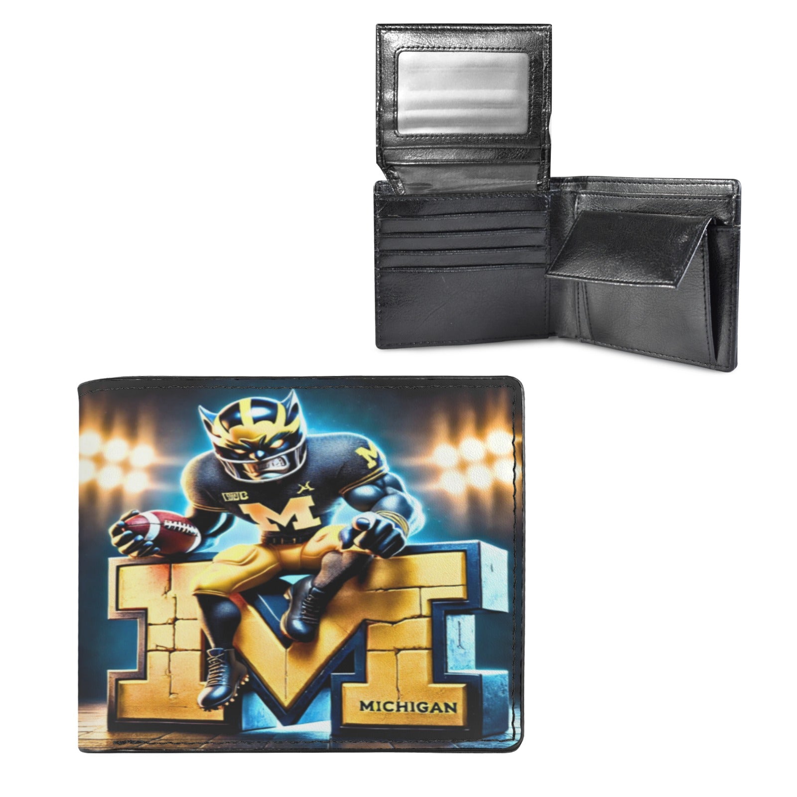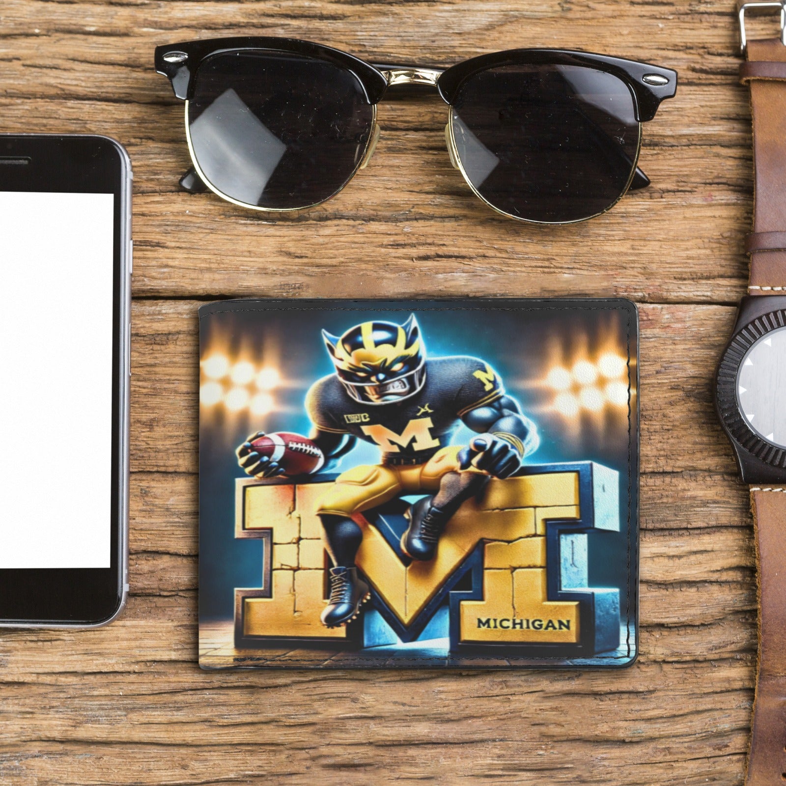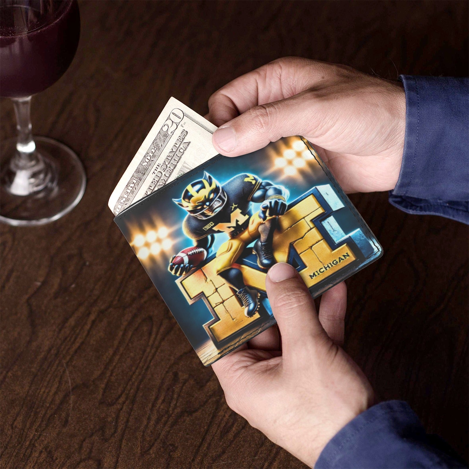 Show off your Wolverine pride every time you reach for your wallet! This men's bifold wallet isn't just a sleek, functional accessory — it’s a full-blown tribute to Michigan football. Featuring a bold design with the iconic Michigan "M" and a fierce football graphic, this wallet screams loyalty and team spirit.