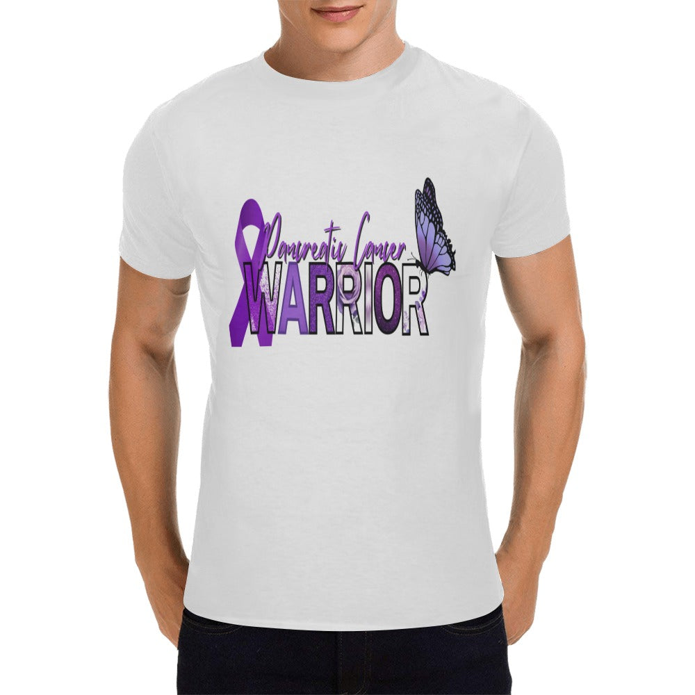 Stand in solidarity with those fighting pancreatic cancer by wearing our Pancreatic Cancer Warrior men's cotton t-shirt. Featuring the powerful purple ribbon and a delicate butterfly, this design symbolizes strength, hope, and transformation in the battle against this challenging disease. With the bold "Warrior" text across the chest, this shirt serves as a reminder of the courage it takes to fight pancreatic cancer, whether you’re supporting a loved one, raising awareness, or walking your own journey.