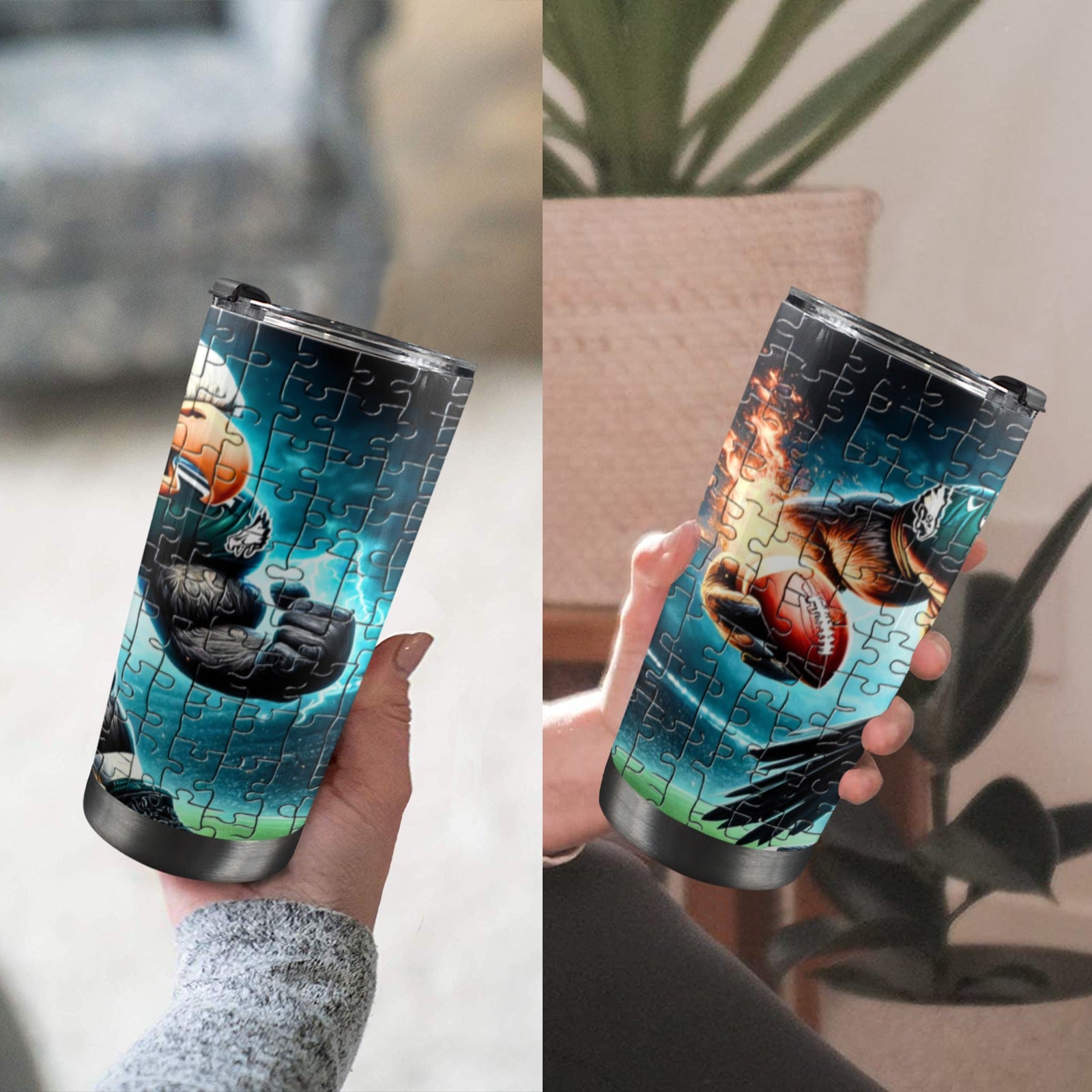 Show your Philadelphia Eagles pride with this 20 oz stainless steel tumbler, featuring a striking design of the Eagles mascot in full action! This tumbler combines bold graphics with exceptional functionality, keeping drinks hot for up to 6 hours or cold for up to 12 hours with its double-wall insulation. Perfect for game days, travel, or everyday use, this tumbler is a must-have for any Eagles fan who wants to showcase their team spirit.