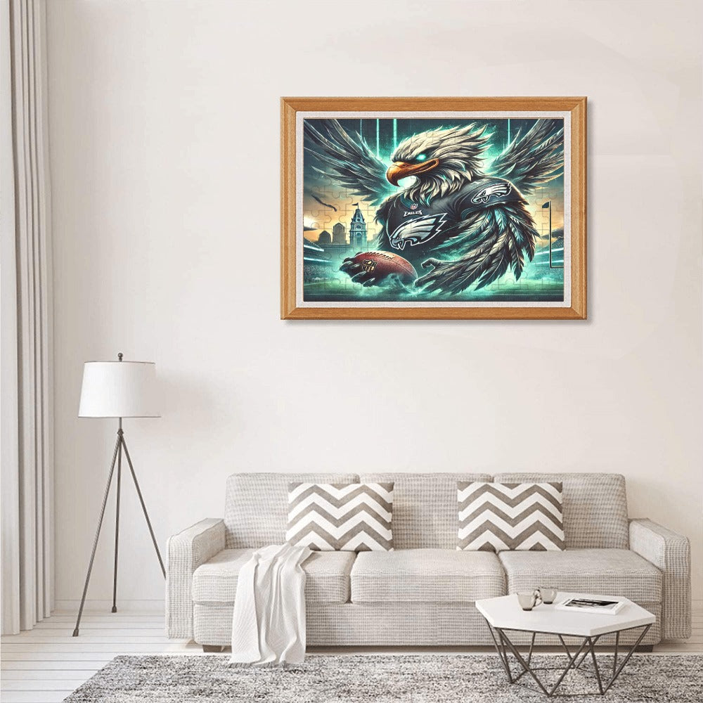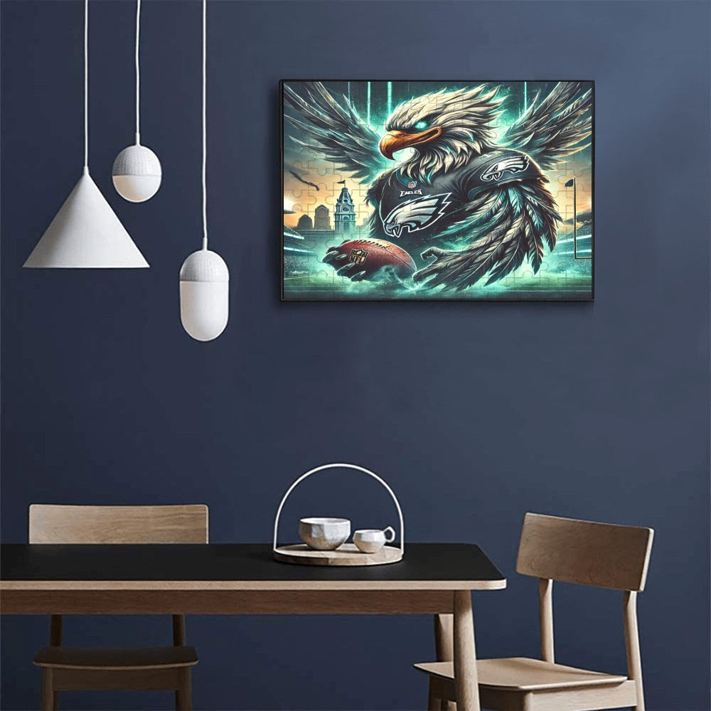 Bring your Philadelphia Eagles passion to life with this 300-piece wooden puzzle, featuring a stunning depiction of the Eagles mascot soaring with power and pride! Perfect for fans of all ages, this high-quality puzzle offers a fun and challenging activity while celebrating your favorite NFL team. With its vivid colors, smooth surface, and durable wooden construction, it’s a must-have for Eagles enthusiasts and puzzle lovers alike.