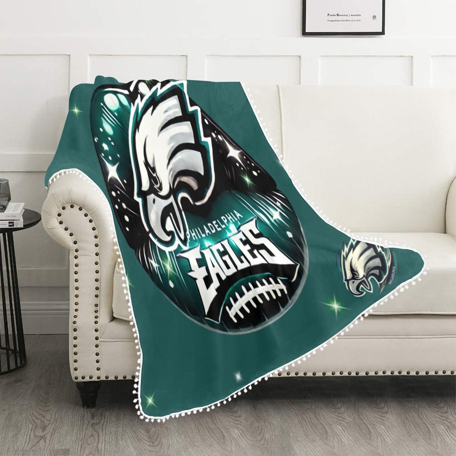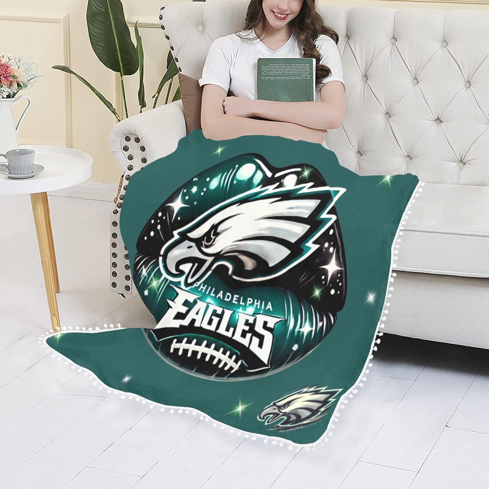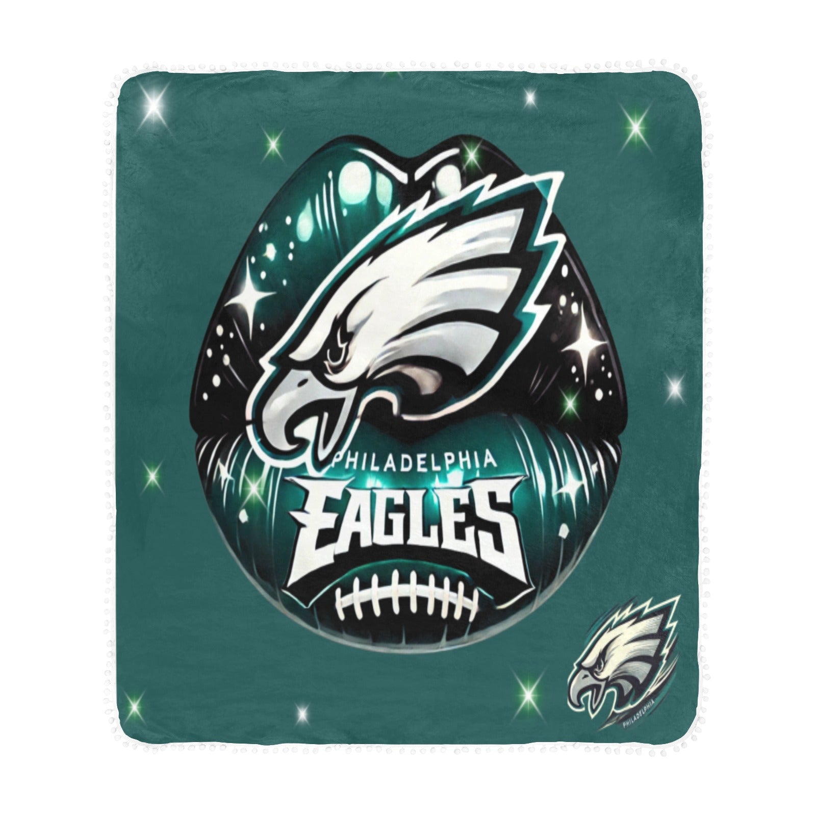 Philadelphia Eagles Lips Pom Pom Fringe Blanket 50x 60
