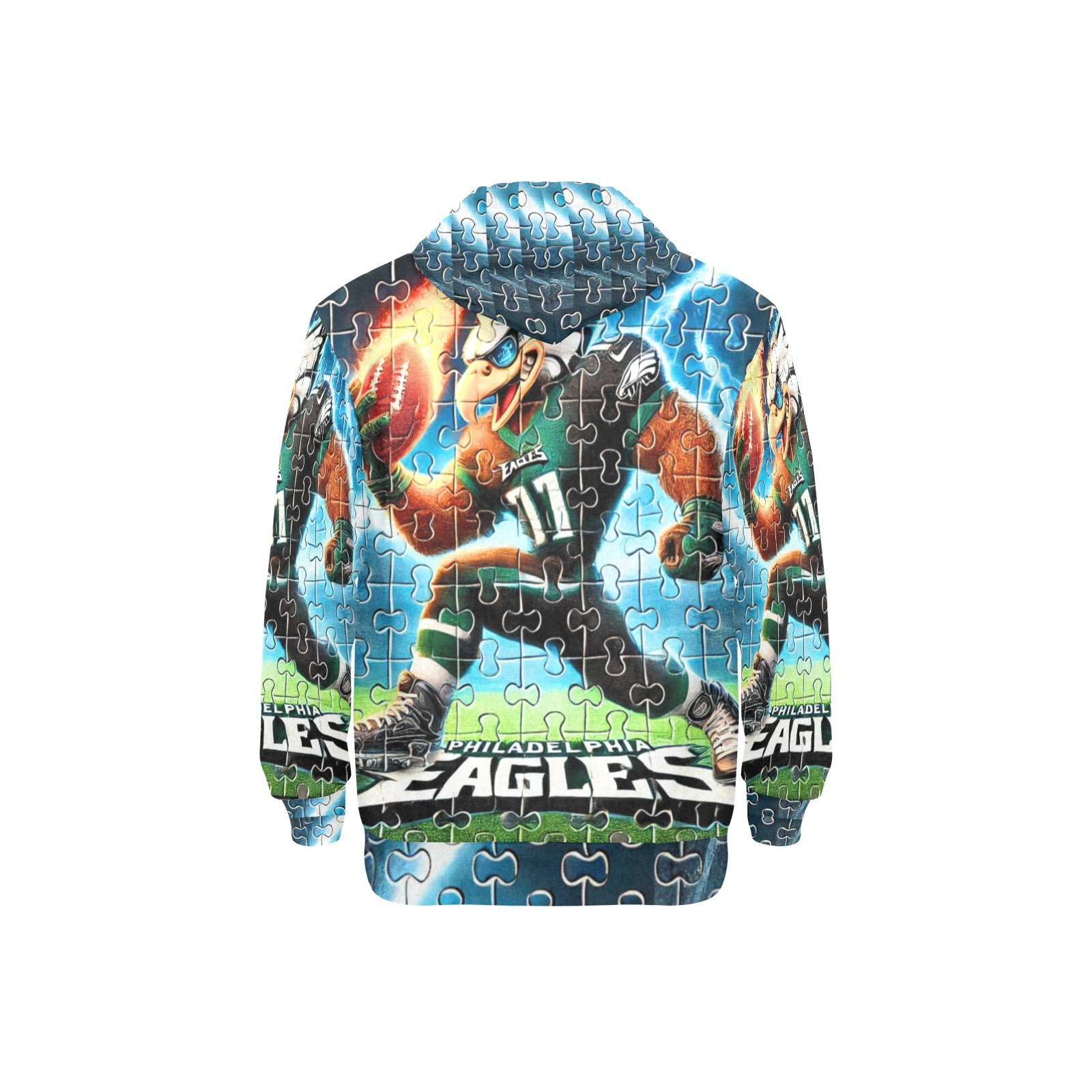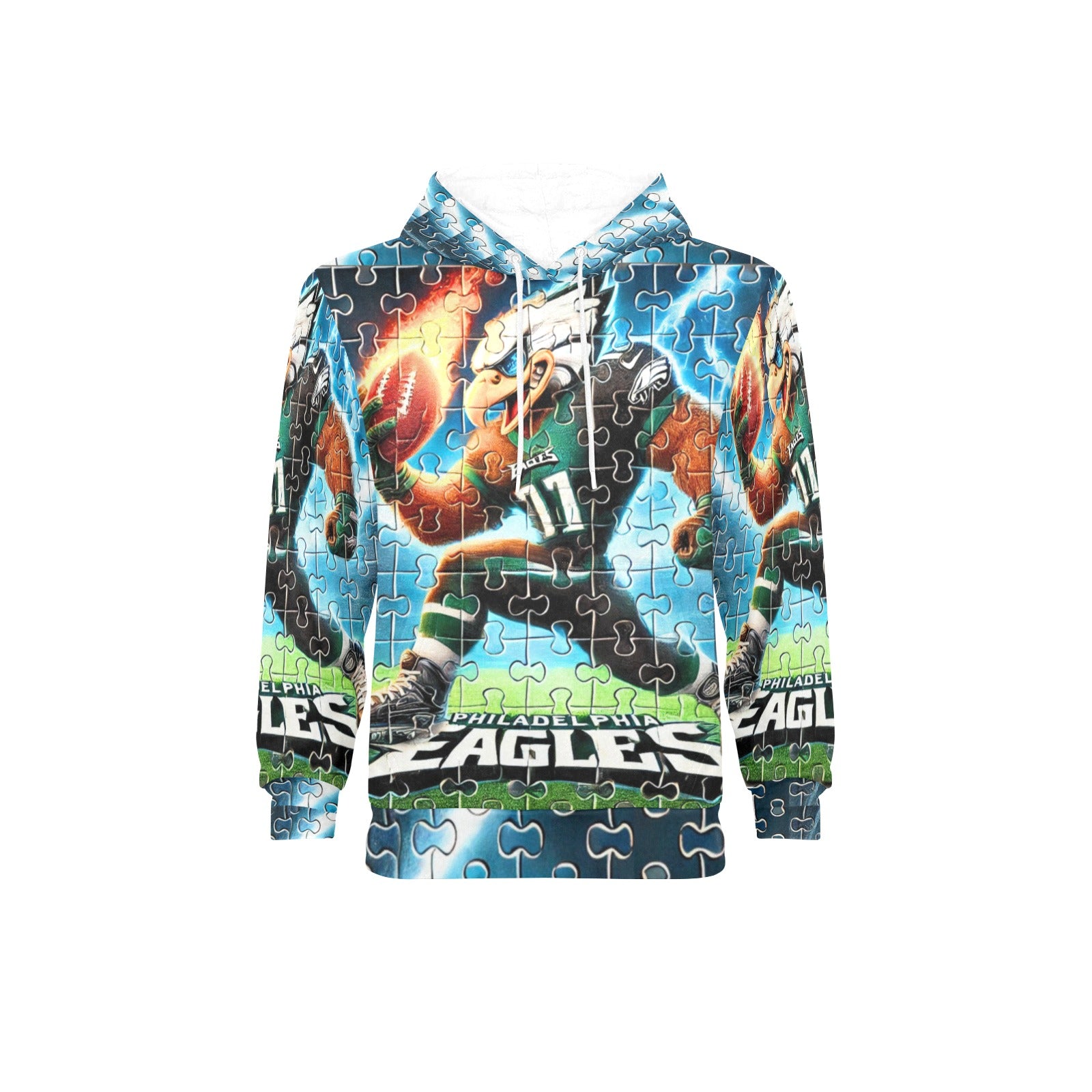 Gear up in ultimate style with this Philadelphia Eagles Men’s Hoodie, featuring a bold interlocking puzzle design that highlights the iconic Eagles mascot and logo. Crafted for true fans, this all-over print hoodie combines unmatched comfort with a standout design, making it perfect for game days, casual outings, or showing off your team pride wherever you go. The soft fleece finish adds warmth, while the vibrant design ensures you stand out as an Eagles superfan.