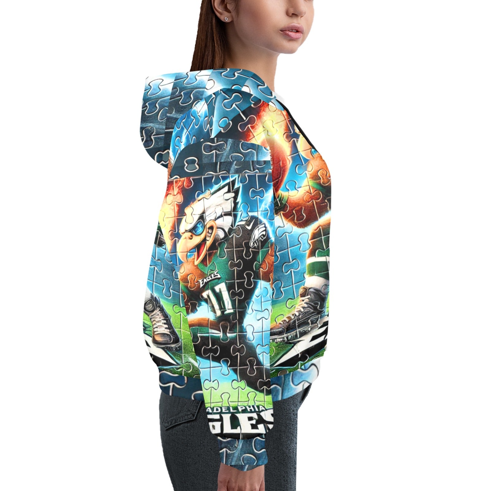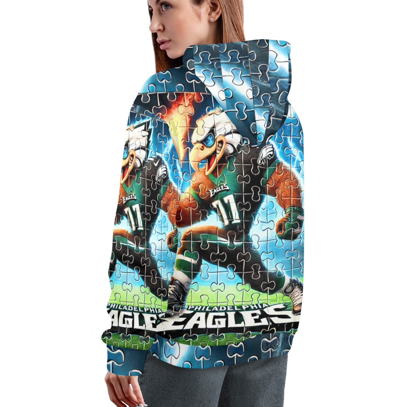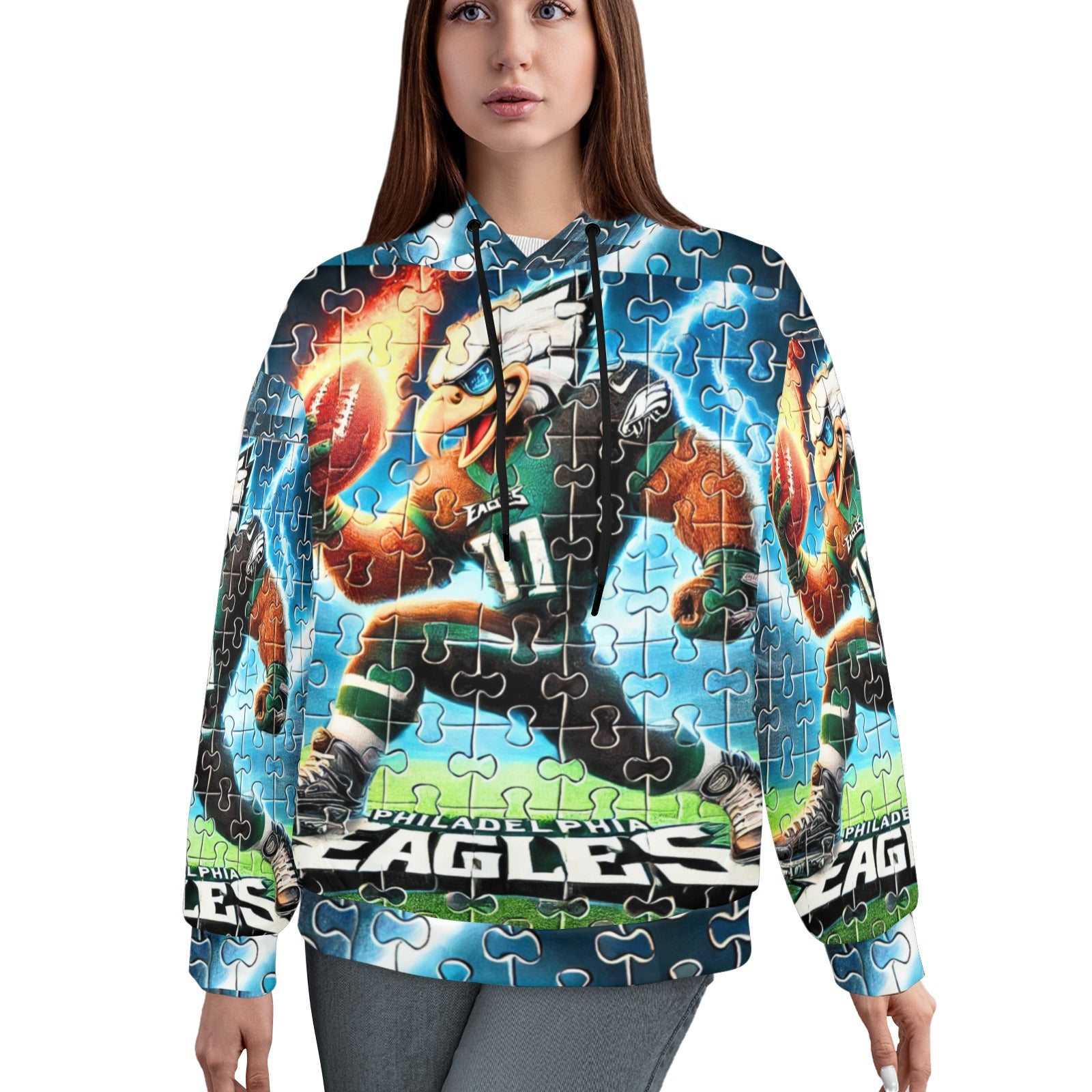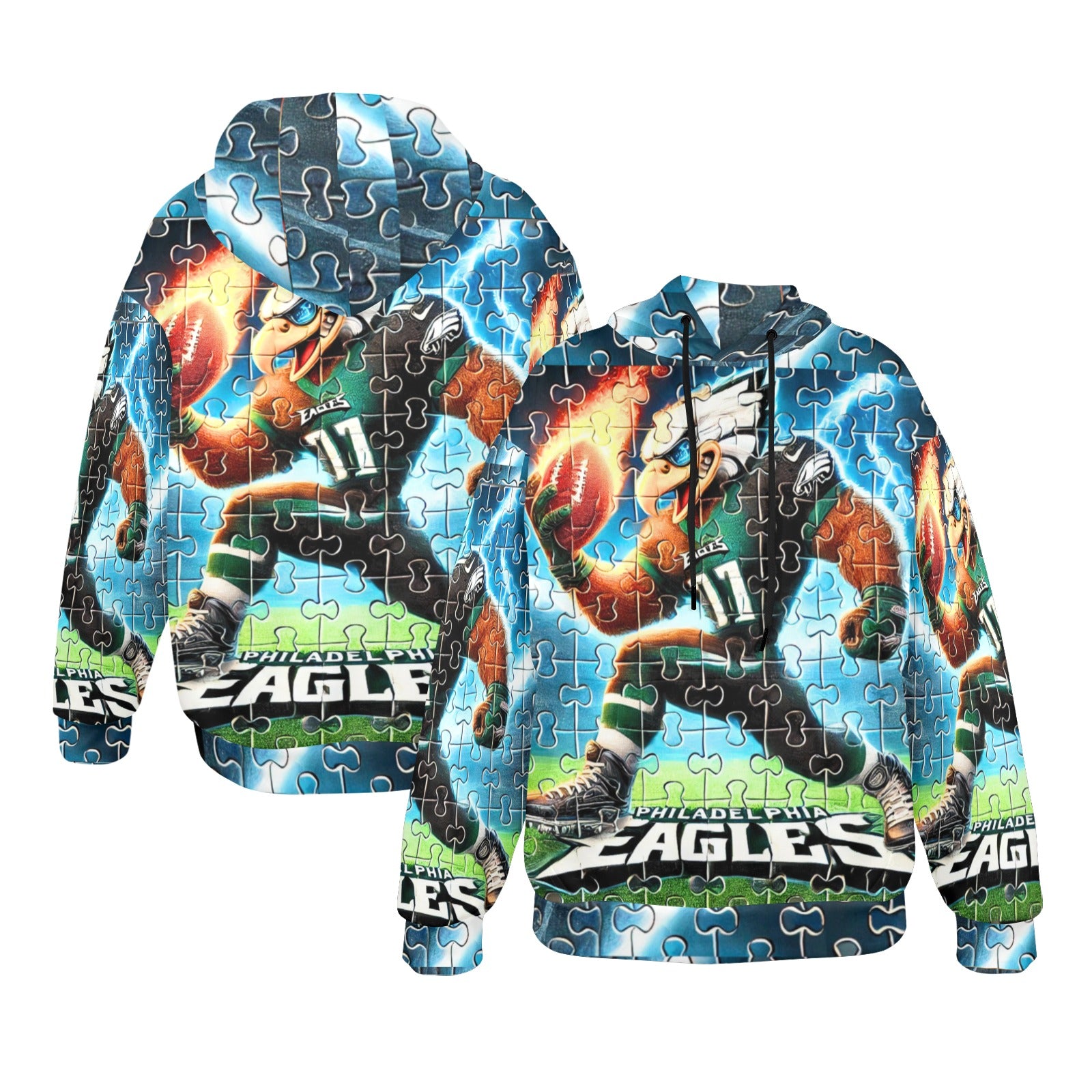 Turn heads and showcase your Philadelphia Eagles pride with this all-over interlocking puzzle design hoodie, made especially for die-hard fans! Featuring a bold depiction of the Eagles mascot and iconic logo integrated into a unique interlocking puzzle pattern, this hoodie is perfect for game days, casual outings, or simply staying cozy in style. With its soft, durable fabric and vibrant design, this hoodie combines fashion and comfort for true fans who want to stand out.