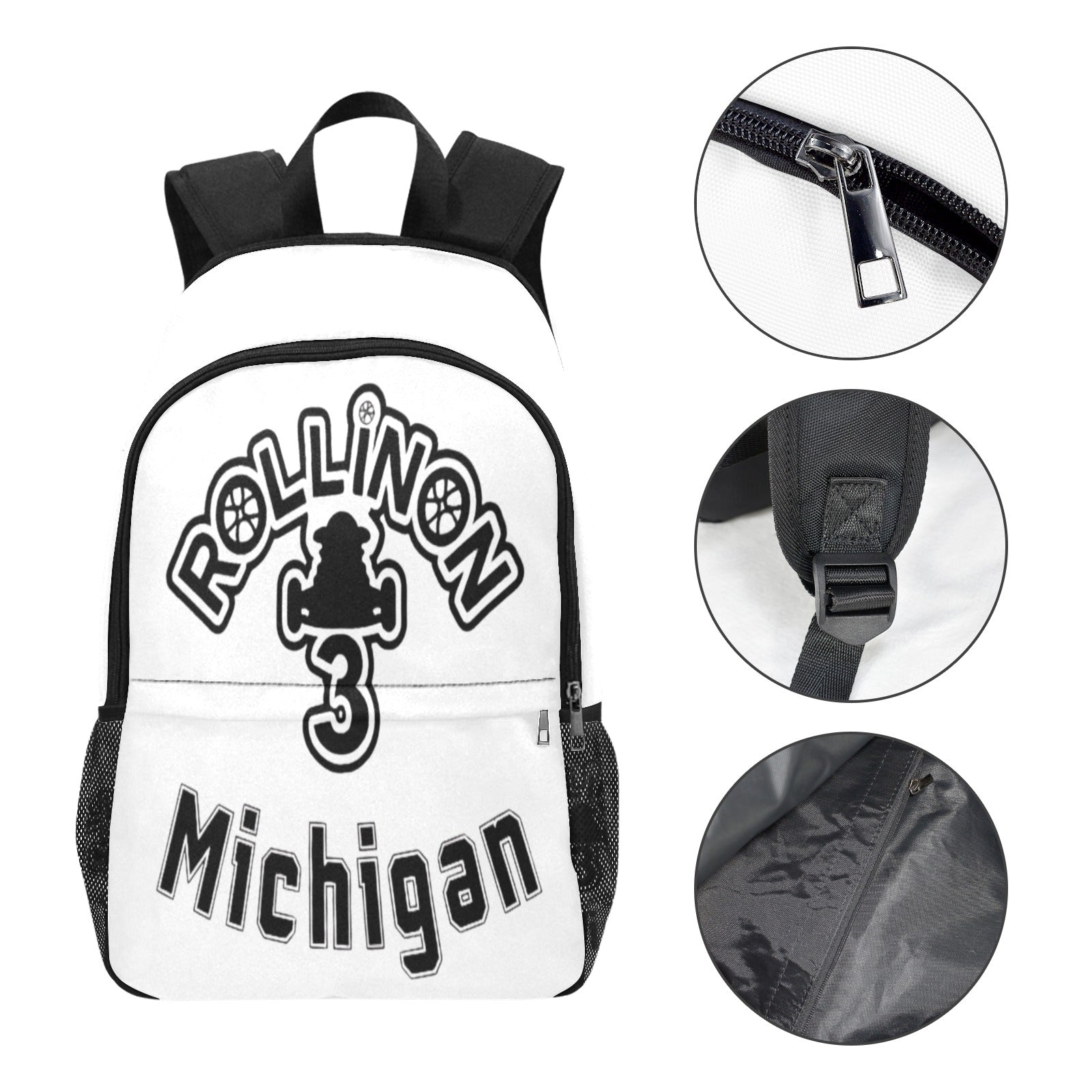 Rollin On 3 Michigan Backpack – Clean Look, Bold State Pride - White & Black