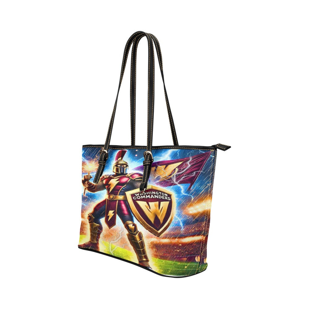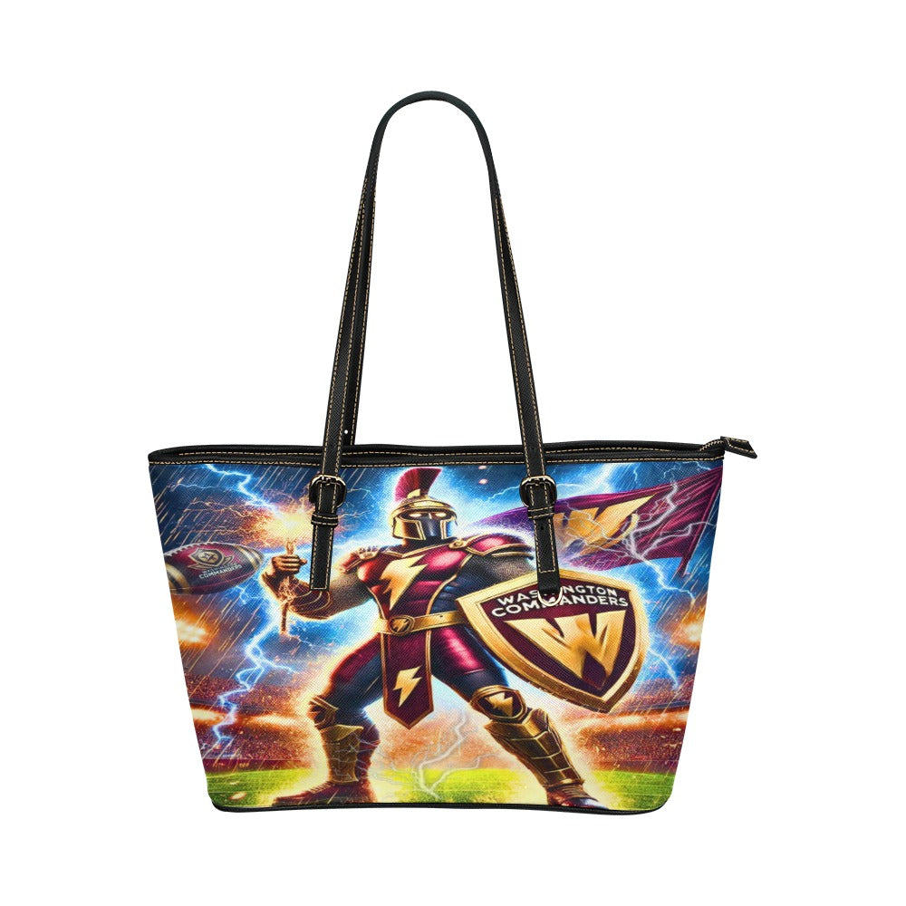 Celebrate your love for the Washington Commanders with this striking leather tote bag! Featuring an empowering design of a warrior holding the Commanders’ shield amidst a vibrant lightning backdrop, this bag perfectly balances style and functionality. Made from durable PU leather, it includes a spacious interior with multiple compartments to store your essentials securely. Whether you're heading to a game, running errands, or showing off your team pride, this tote bag is the ideal companion for passionate Commanders fans.