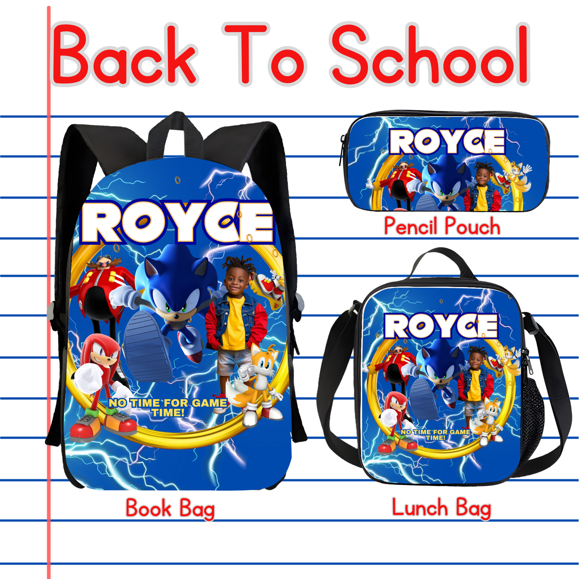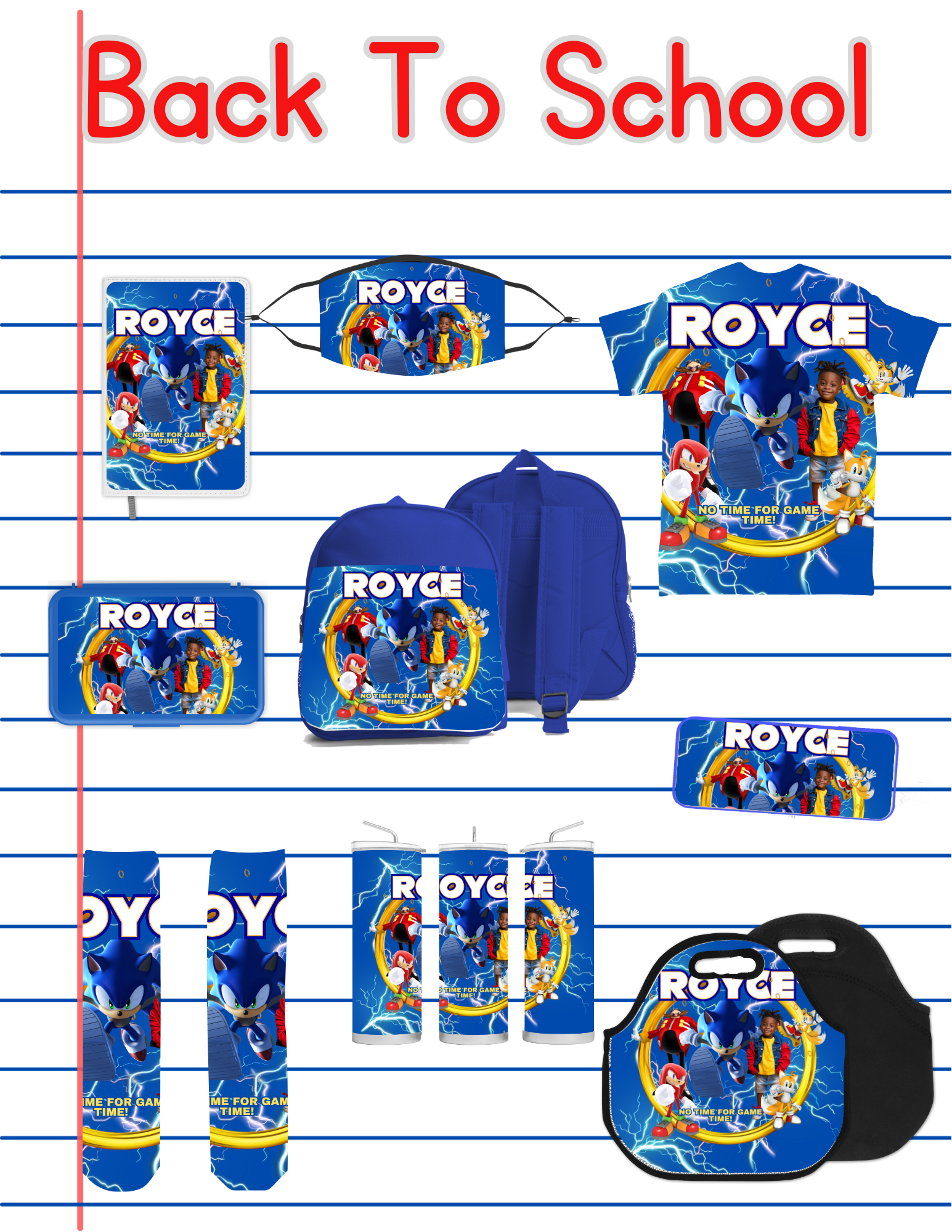 peed into the school year with this dynamic Sonic the Hedgehog editable template, perfect for creating personalized kids' gear. Featuring Sonic and his friends in an electrifying design, this template is ideal for customizing backpacks, lunchboxes, shirts, face masks, and more. Easily personalize the design with your child's name and photo using Canva, the user-friendly online design platform. Please note that reselling the template itself is prohibited, but you are free to use it to create physical products for commercial sale.