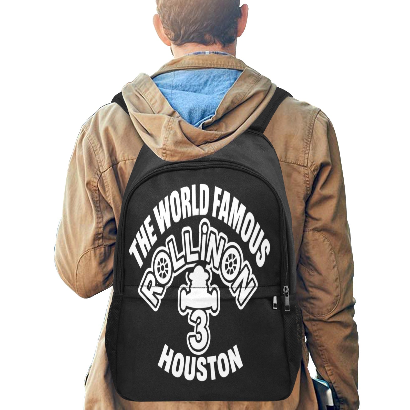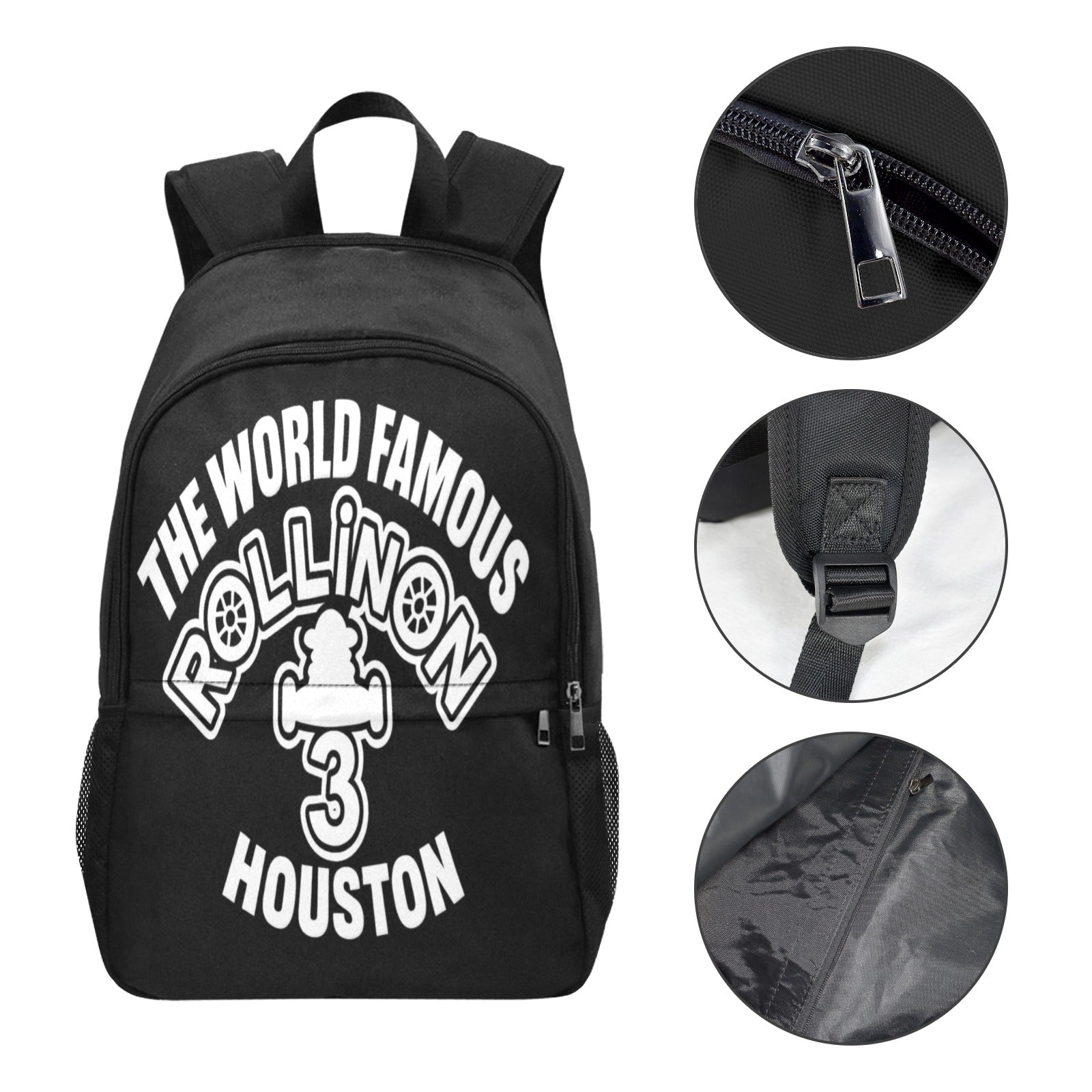 Step up and rep H-Town with unmatched style. This black backpack featuring a bold white Rollin’ on 3 Houston graphic is built for those who ride hard and carry pride on their shoulders. Whether you're hitting the books, the office, or the streets, this backpack proves that Texas does it bigger—and better.