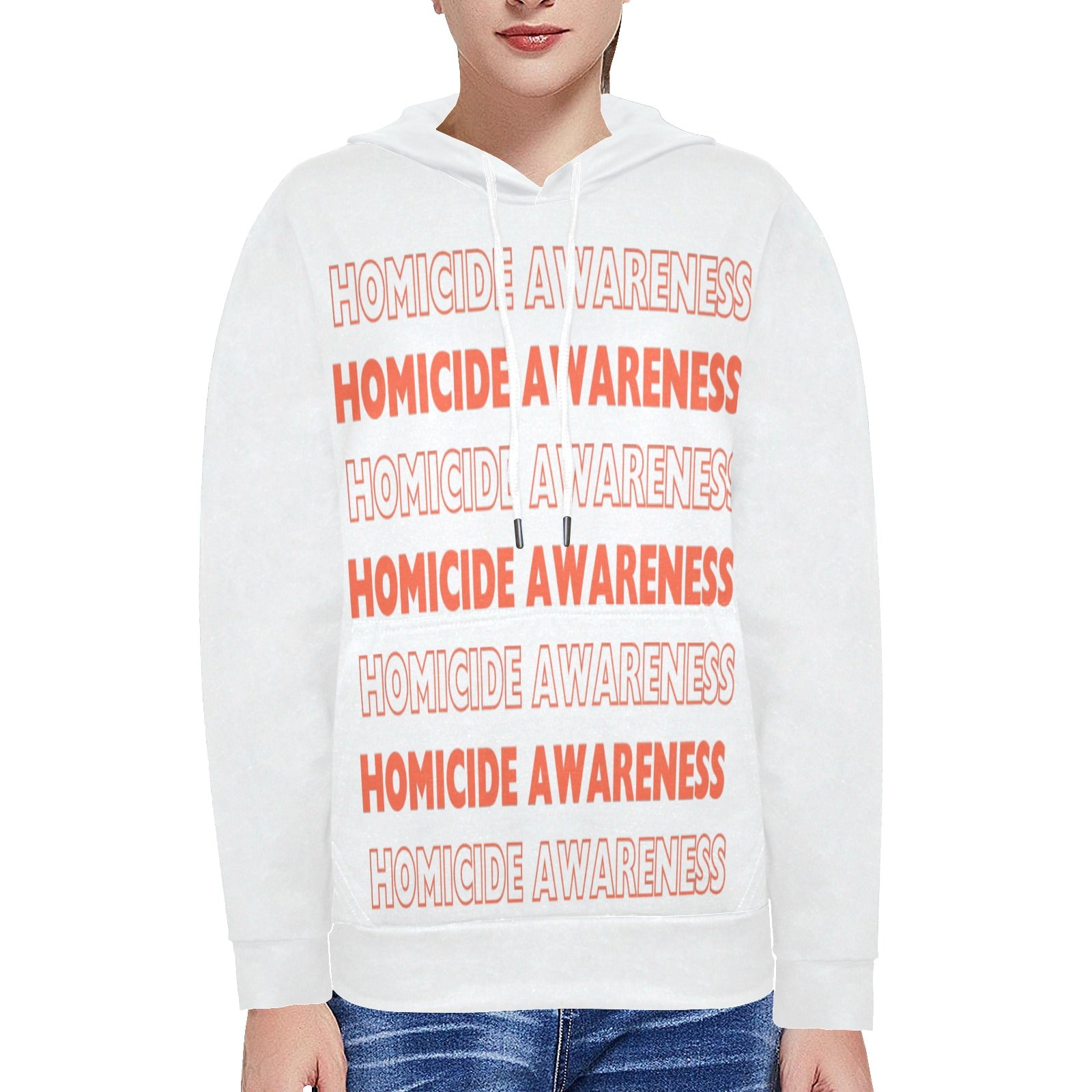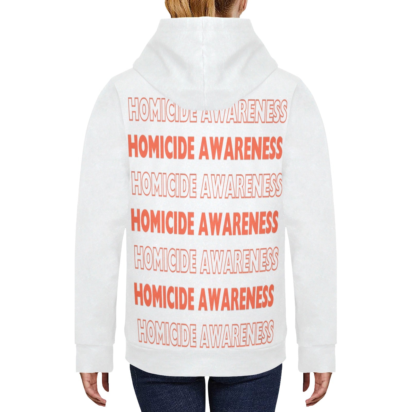 Spread Awareness, Show Support. This women's Homicide Awareness fleece hoodie is more than just a piece of clothing – it's a statement of solidarity, a voice for those we’ve lost, and a call for change. Adorned with the bold "HOMICIDE AWARENESS" message across the front and back, this hoodie is designed to keep the conversation going and bring awareness to a critical issue that affects countless lives.