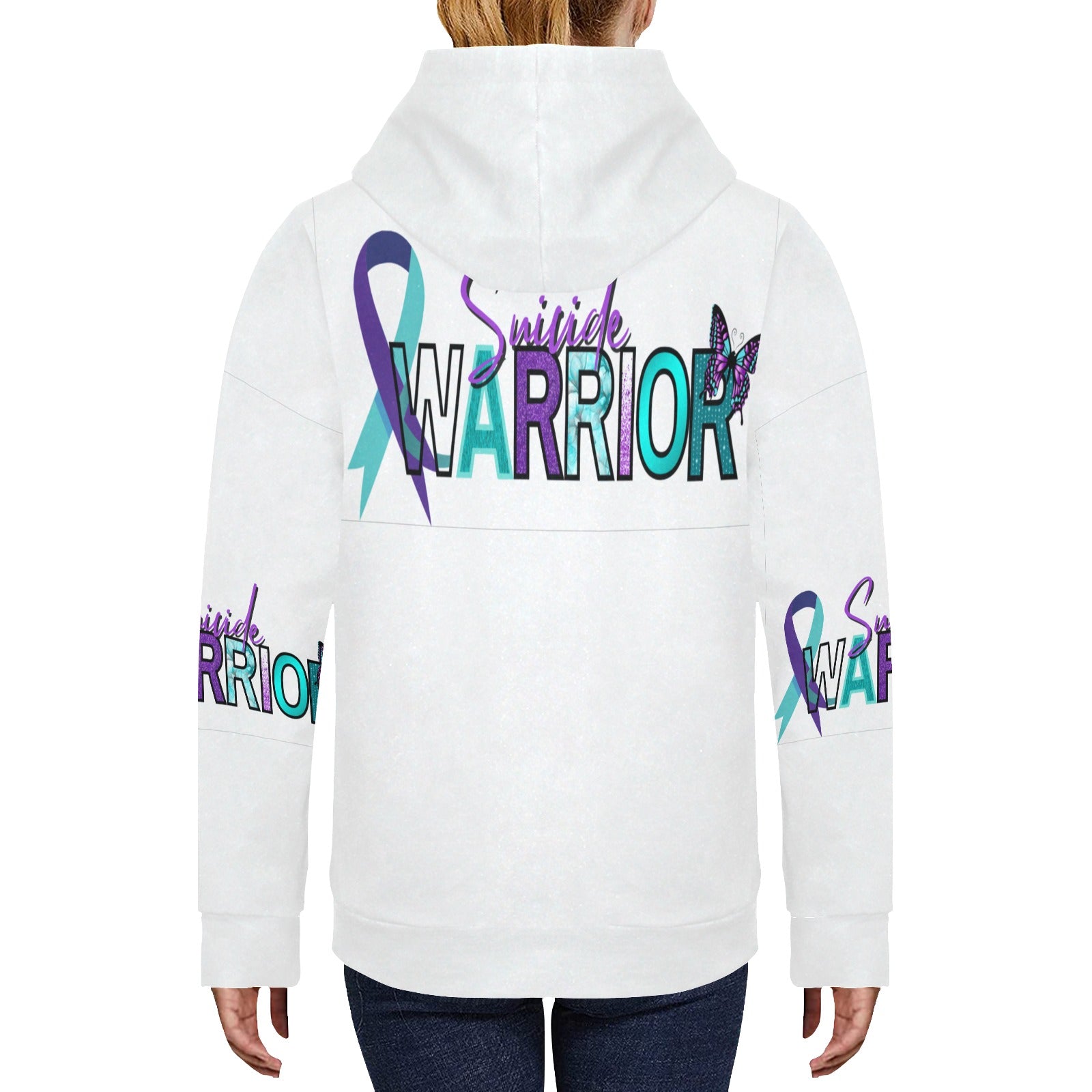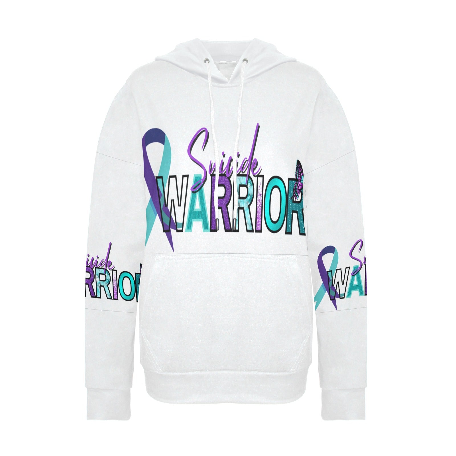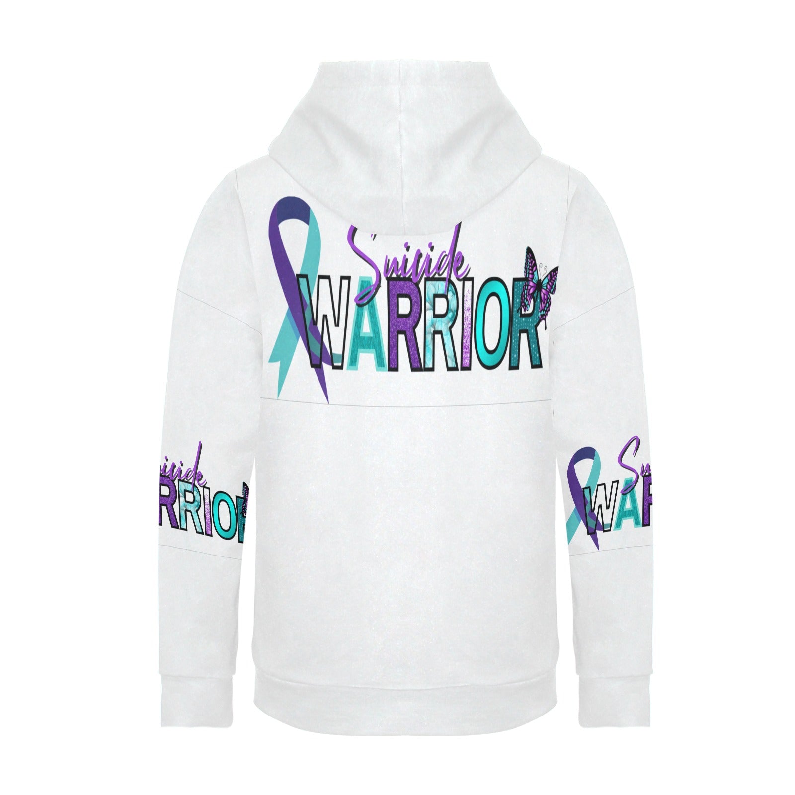 Wrap yourself in warmth, comfort, and purpose with this "Suicide Warrior" Women's Fleece Hoodie—a heartfelt symbol of strength, resilience, and hope. Designed for those who fight, support, and raise awareness about suicide prevention, this hoodie serves as a reminder that no one fights alone. The bold "Suicide Warrior" message, adorned with the purple and teal suicide awareness ribbon, is a tribute to those who continue the fight against this silent battle and those who support loved ones facing it.
